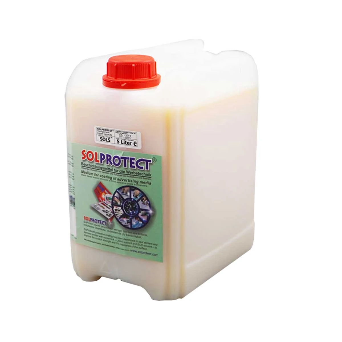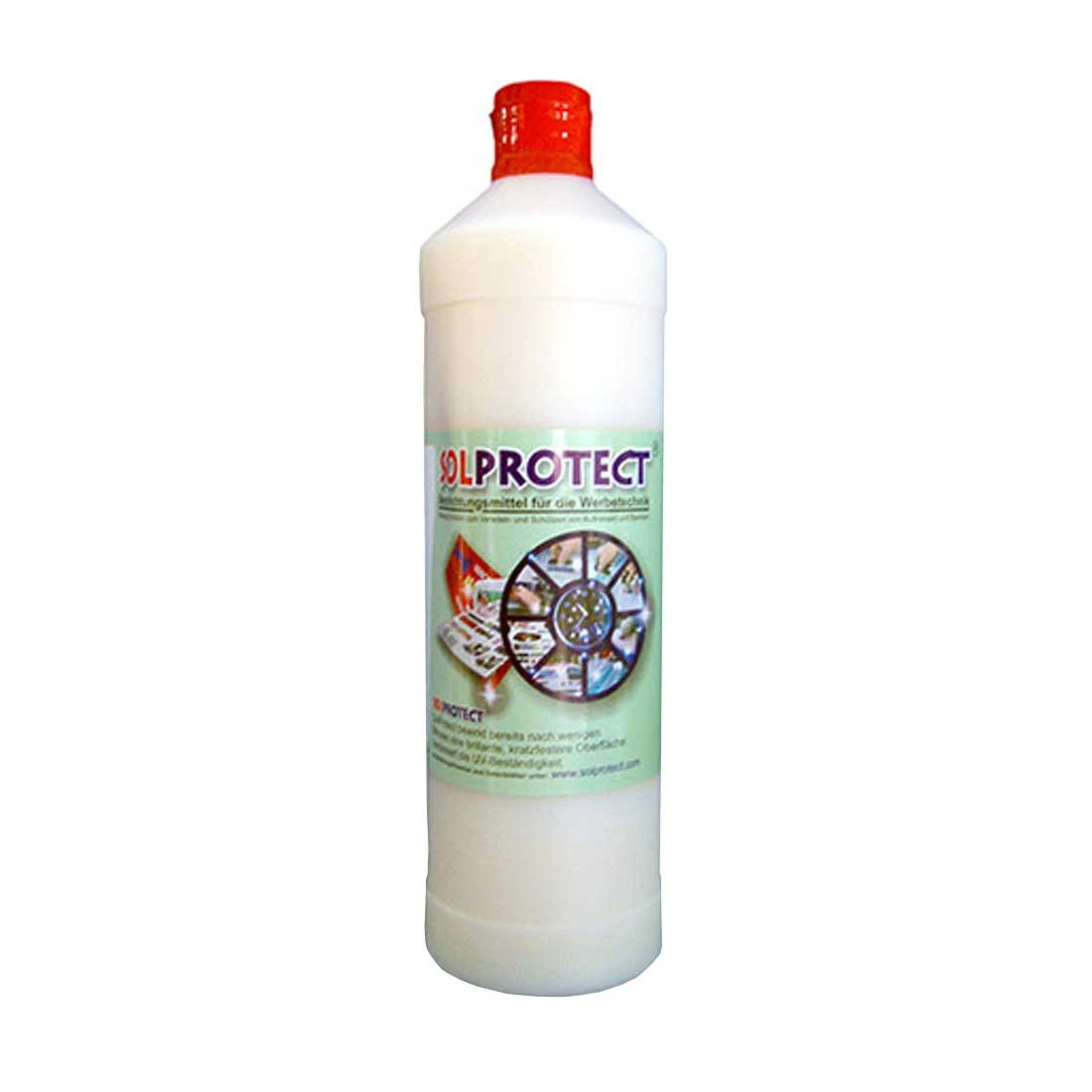 Das Beschichtungsmittel für die Werbetechnik. SolProtect® Flüssiglaminat wurde in erster Linie zum Versiegeln von mit Solvent-, Light- Solvent und Tinten gedruckten Aufklebern (formgeschnittenen Aufklebern) entwickelt um die Kratzfestigkeit und UV-Beständigkeit der Oberfläche zu verbessern. Kann aber auf Grund der hervorragenden Eigenschaften für zahlreiche andere Zwecke verwendet werden.