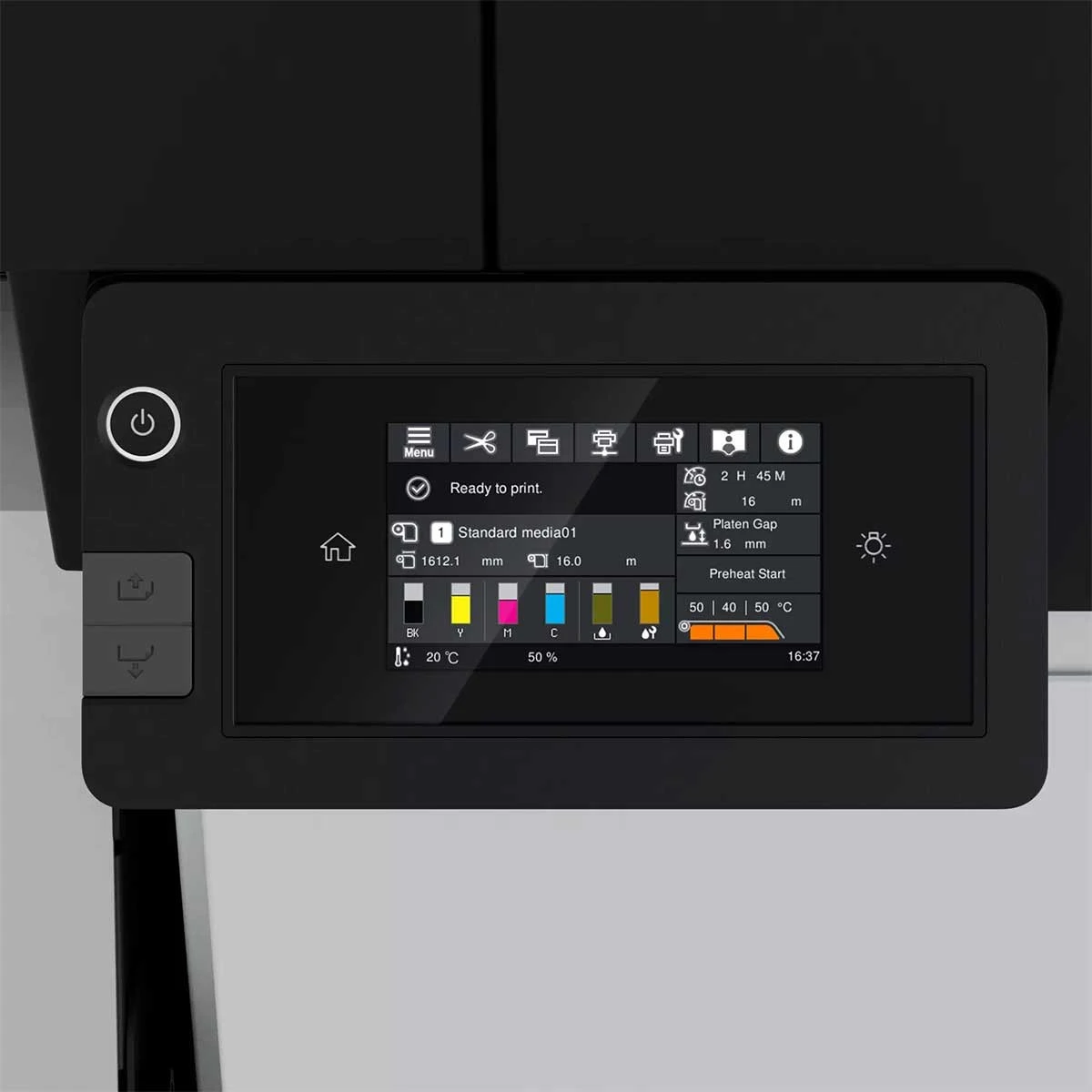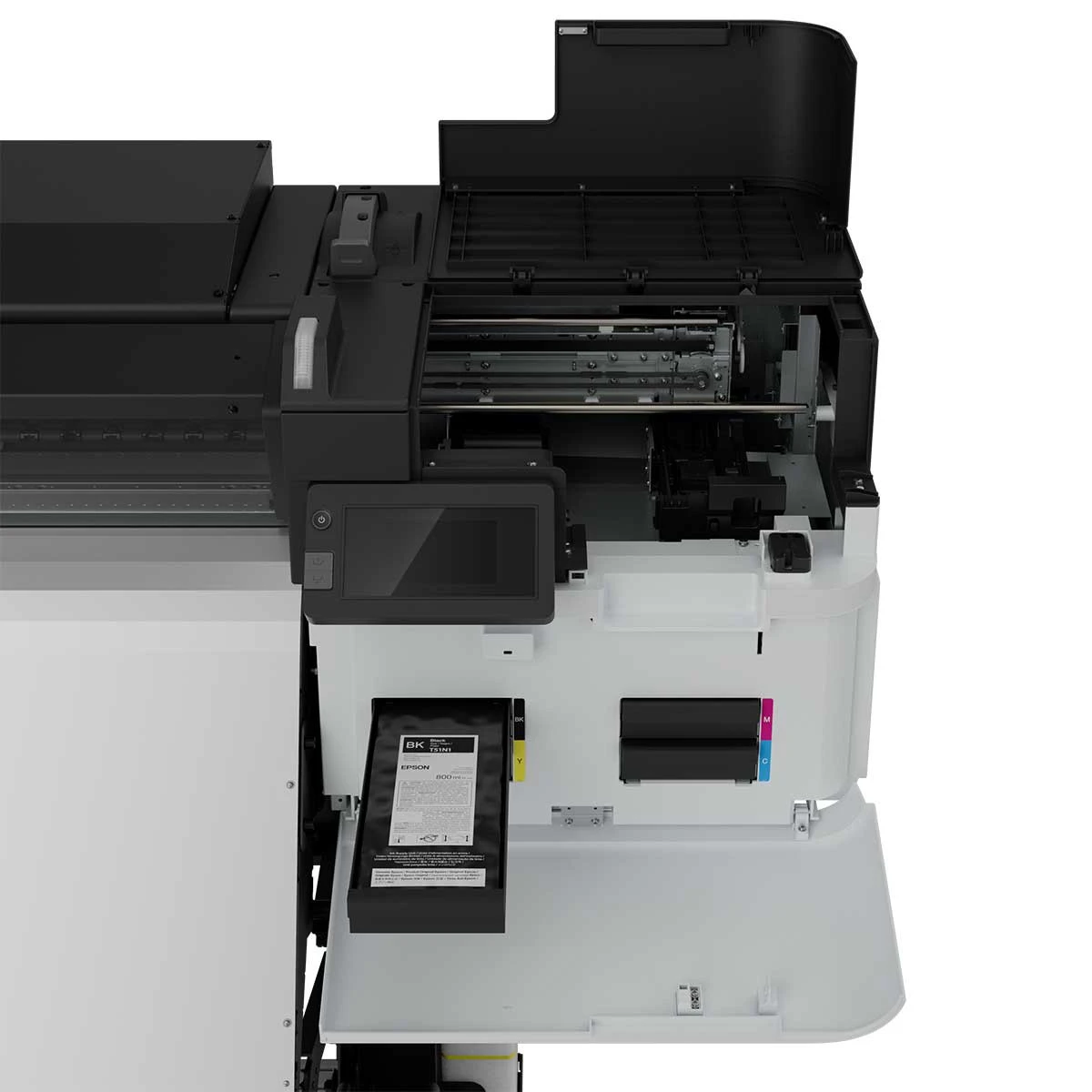 Das 4,3-Zoll große Touchpanel ermöglicht eine mühelose Überwachung und Auftragsverwaltung. Außerdem verfügt es über eine vom Benutzer steuerbare LED-Beleuchtung des Druckerinneren, die eine einfache Überwachung während des Betriebs ermöglicht. Eine neue flache Seitenabdeckung bietet eine bequeme Arbeitsfläche für die Prüfung von Ausdrucken oder die Verwendung eines Laptops, was die Effizienz des Workflows weiter verbessert.