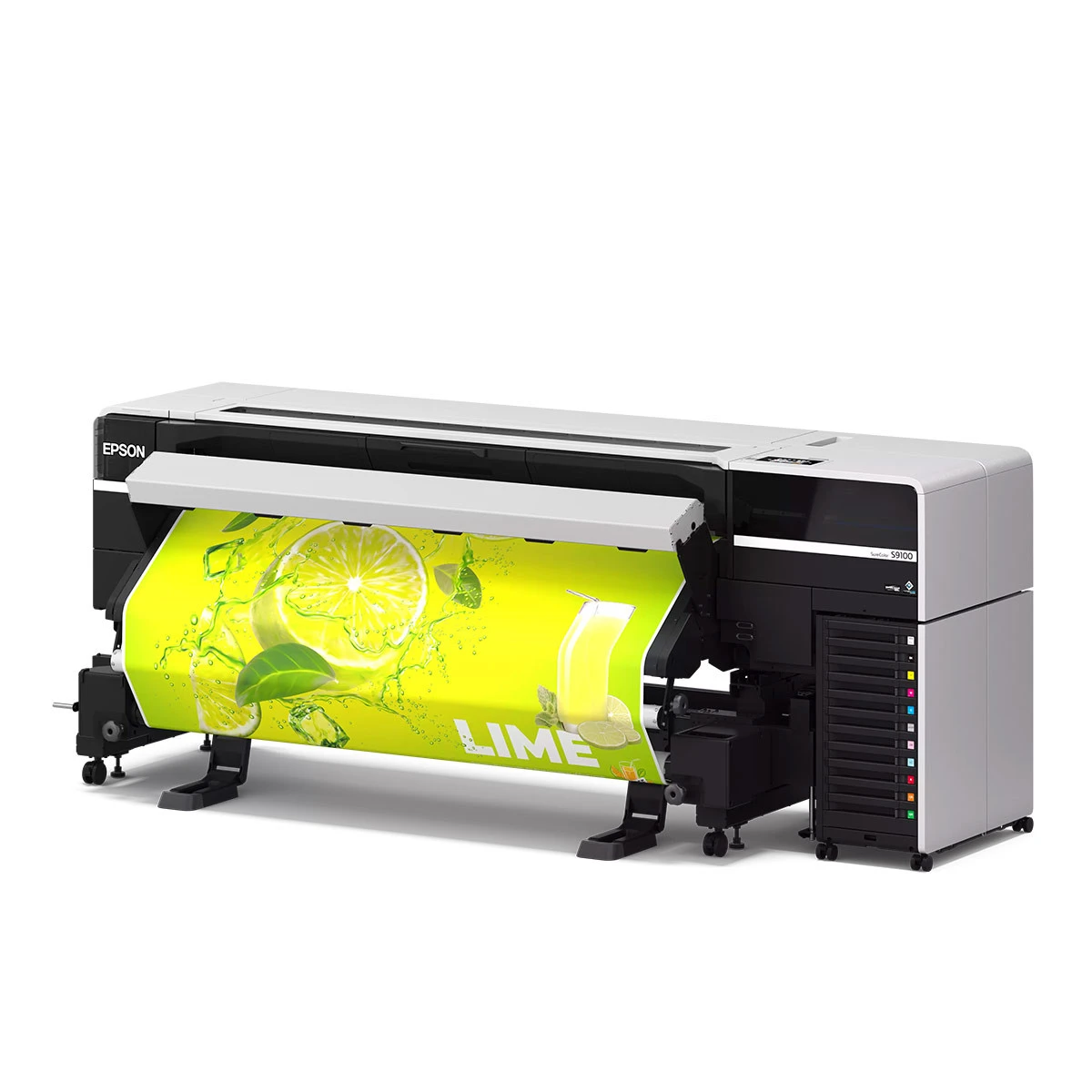 Neue Großformat Digitaldruckmaschine mit dem bewährten UltraChrome-GS3-Tintensystem mit 11 Farben, einschließlich einer neu hinzugekommenen grünen Farbe. Dieser erweiterte Farbraum liefert lebendige, präzise Drucke mit verbesserter Farbpräzision auf einer Vielzahl von Medien mit weniger Durchgängen, was sowohl Qualität als auch Geschwindigkeit gewährleistet.
