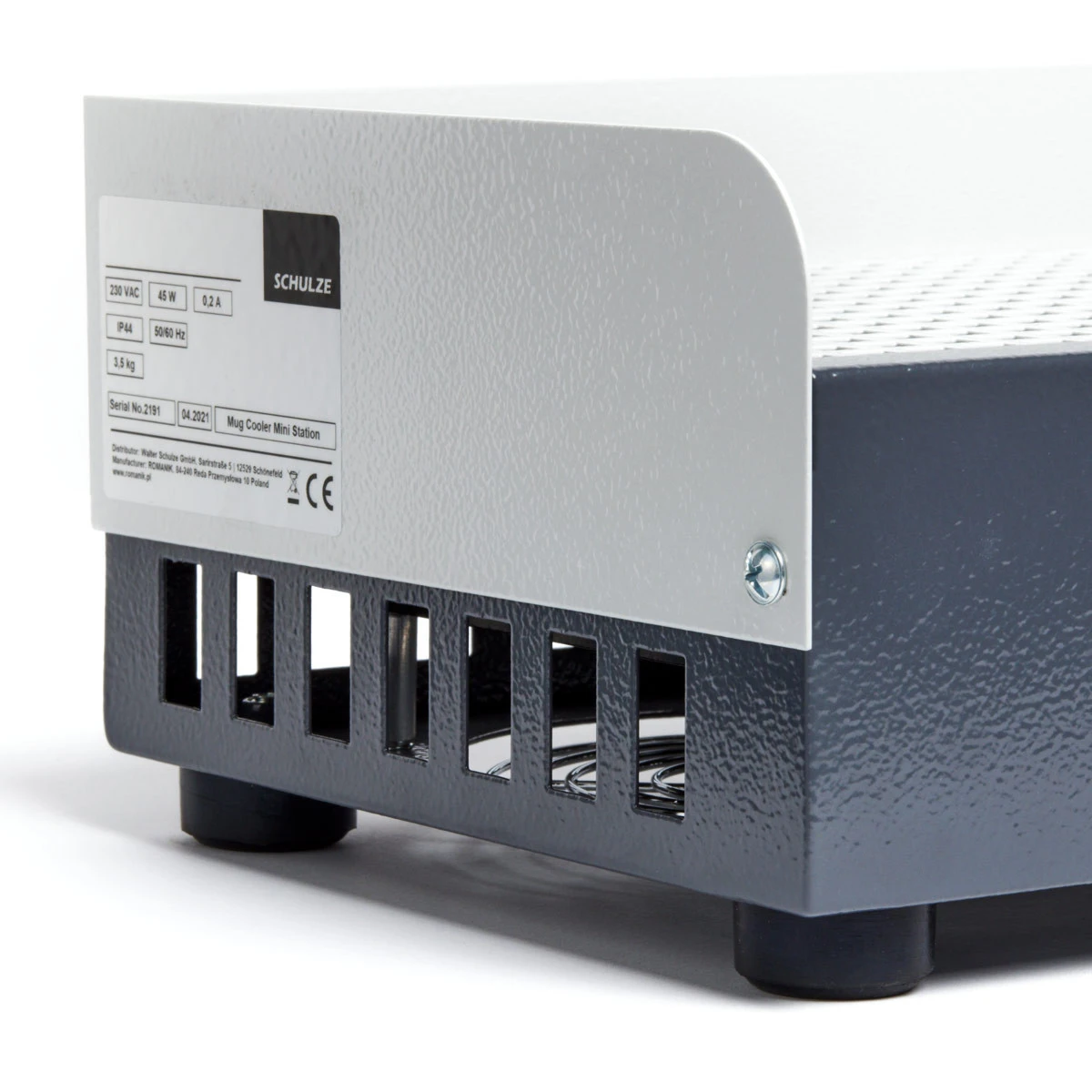 Die Mug Cooler Station ist eine Ventilator betriebene Kühllösung für Tassen und Gefäße. Es gibt sie in zwei Größen.