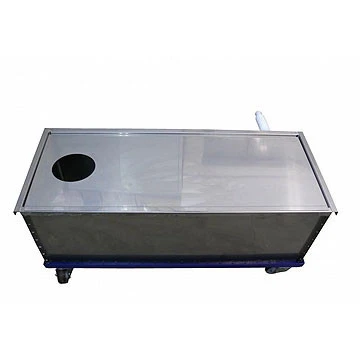 Im Separator befinden sich Festkörper, Suspensionen und Reste von der Emulsion. Dieses Gerät kann nur im Fall von der Reinigung des Siebdruckrahmens verwendet werden. Der Separator trennt die Festkörper und Suspension in drei von einander unabhängigen Kammern.