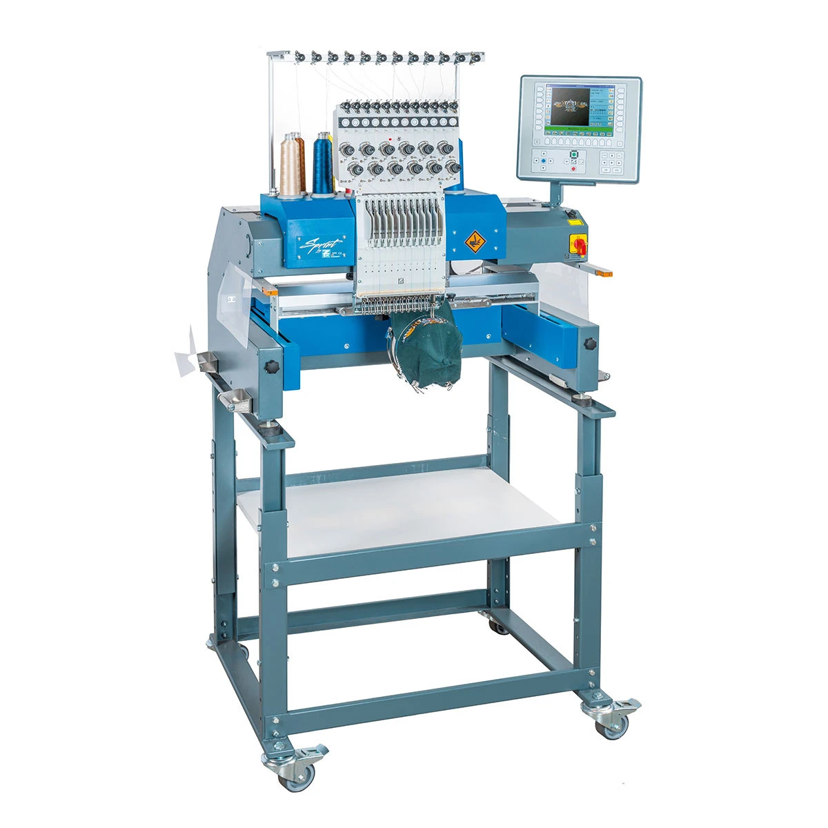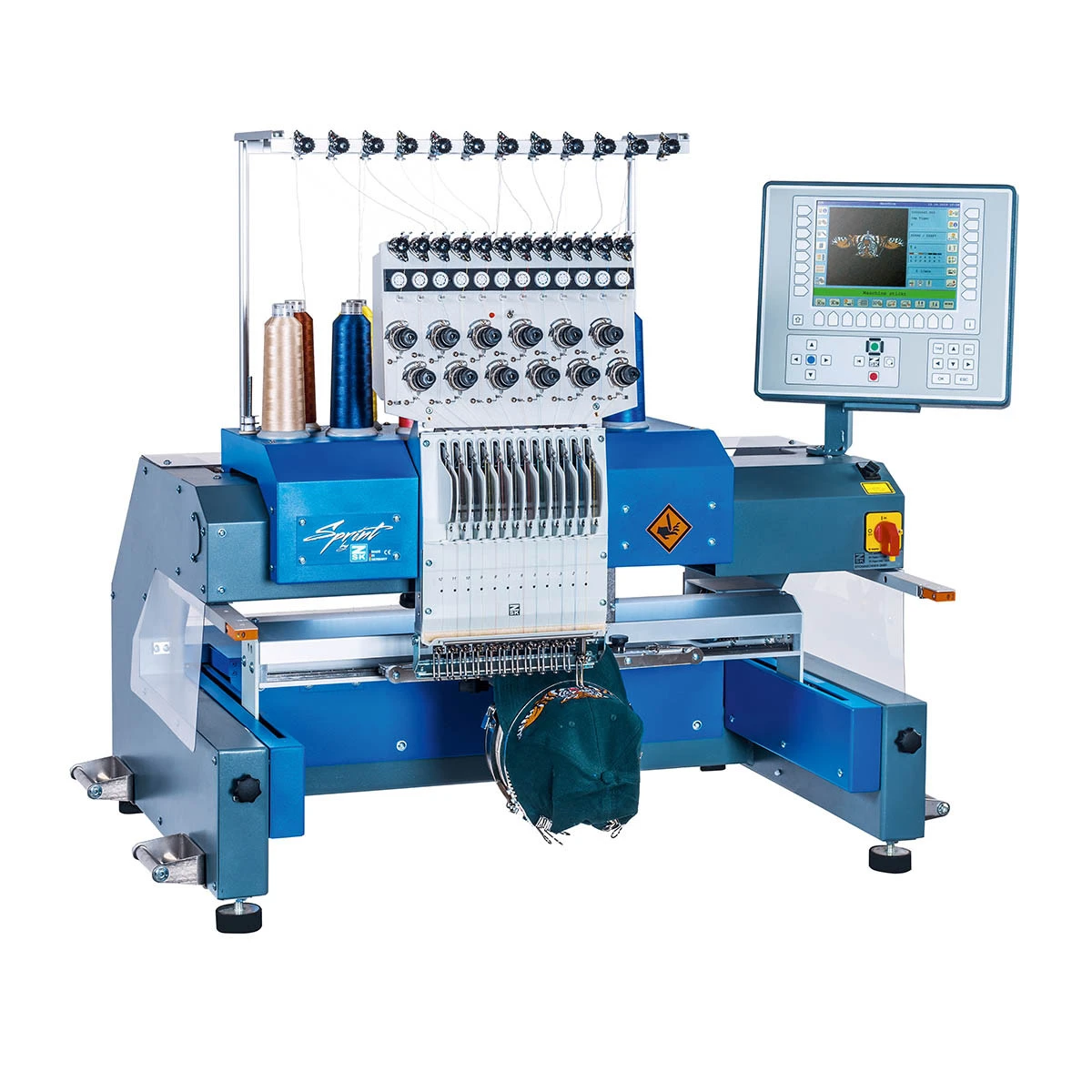 Professionelle 12-Nadel-Universal-Portalstickmaschine für vielseitige Stickanwendungen. Diese leistungsstarke Stickmaschine eignet sich optimal für Einzelmotive, Bordüren, Schlauchwaren und die Kappenstickerei. Mit ihrer vollständigen maschinellen Ausstattung ist sie sofort betriebsbereit und bietet höchste Flexibilität für Stickereien, Textilveredler und Produktionsbetriebe. Die moderne T8-2 Bedieneinheit sorgt für eine intuitive Steuerung, während der integrierte Fadenschneider effizientes Arbeiten ermöglicht. Mit ihrer umfangreichen Ausstattung, hohen Präzision und leistungsstarken Technik ist diese 12-Nadel-Stickmaschine eine ausgezeichnete Wahl für alle, die ihre Stickproduktion erweitern oder auf ein professionelles Niveau heben möchten.