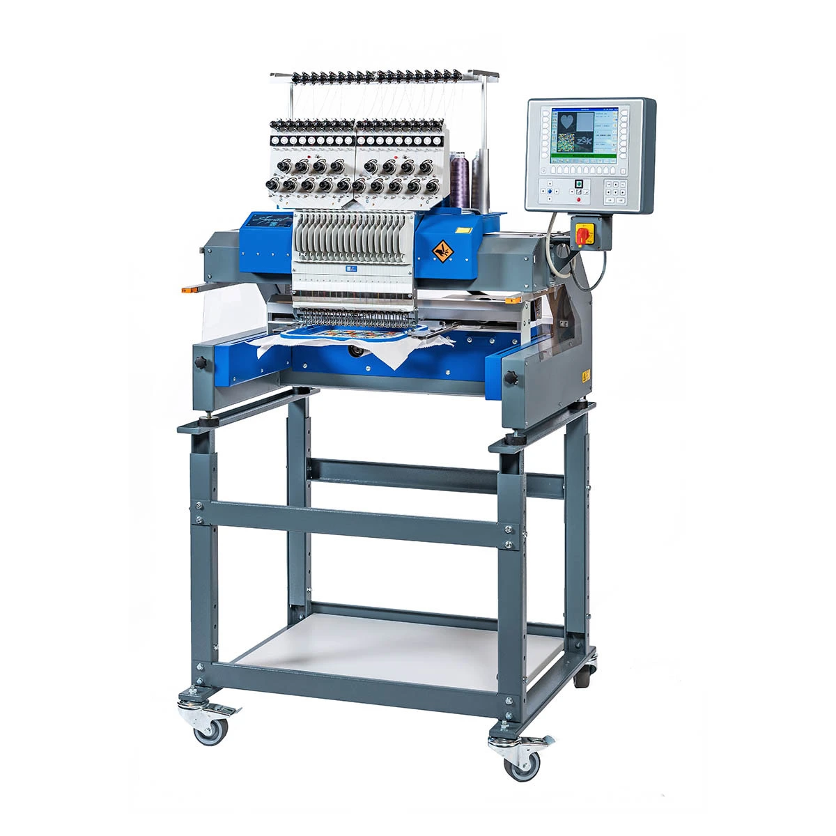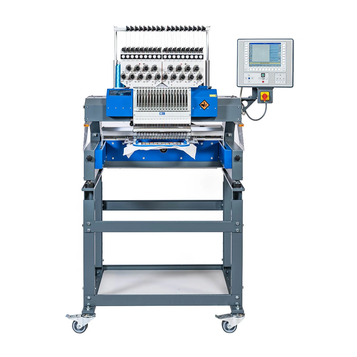 Leistungsstarke 18-Nadel-Universal-Portalstickmaschine für professionelle Stickerei. Diese vielseitige Stickmaschine ist optimal geeignet für Einzelmotive, Bordüren, Schlauchwaren und die Kappenstickerei. Dank der kompletten maschinellen Ausstattung ist sie sofort einsatzfähig und bietet hohe Präzision, Effizienz und Flexibilität für anspruchsvolle Stickproduktionen. Die moderne T8-2 Bedieneinheit ermöglicht eine intuitive Steuerung, während der integrierte Fadenschneider für einen reibungslosen Workflow sorgt.