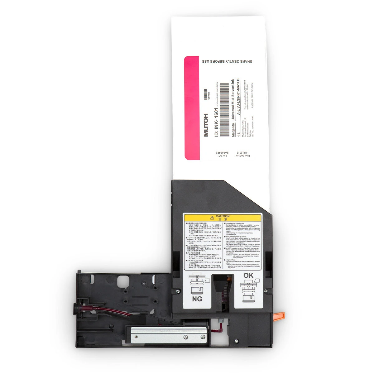Tintenbeutel Adapter-Set (1 Set besteht aus 4 Adaptern) für XpertJet & ValueJet Serie zur Aufnahme von Original 1L MUTOH Tintenbeutel MS31/MSI3A Eco-Solvent- oder DS3 Allround Sublimationstinte. NICHT KOMPATIBEL mit MUTOH Universal-Mild-Solvent (UMS) Tinte.