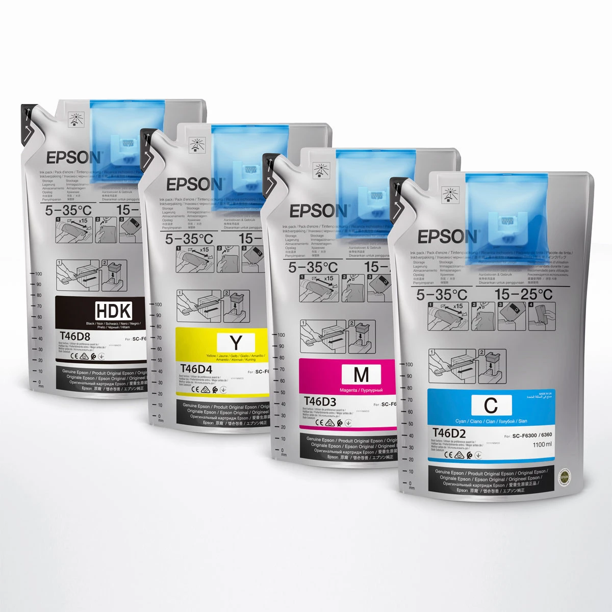Original Epson Ultrachrome DS Tintenpacks mit 1.100 ml Befüllung.