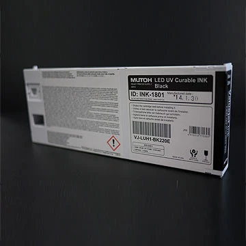 LED-UV-Tinten für extrem scharfe, gefahrlosen und gebrauchsfertigen Druck. Die neuen LED-UV-Tinten von Mutoh in den Farben CMYK + Weiß und die entsprechenden Lacke sind völlig frei von flüchtigen Kohlenwasserstoffen und enthalten keinerlei gefährliche Luftschadstoffe.