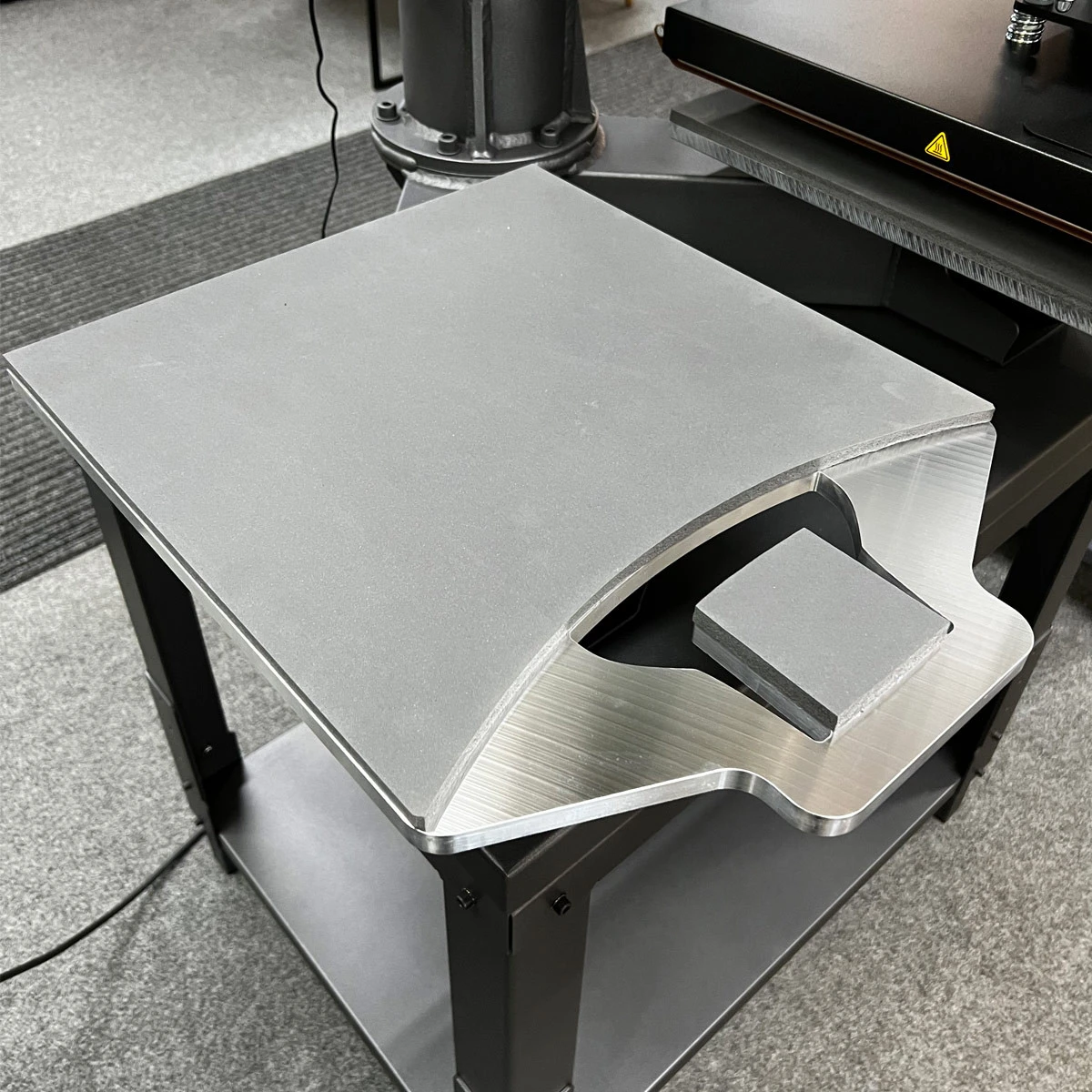 Individualisierte Innenlabels in T-Shirts, etc. werden immer mehr zum Trend. Damit das Logo auch den richtigen Platz im Textil findet, gibt es Basisplatten speziell für den Label-Druck. Hier liegt das Textil auf einer normal großen Basisplatte auf, allerdings wird auf einer kleinen, separaten Platte die Innenseite des Textilrückens hervorgehoben, so dass diese veredelt werden kann.