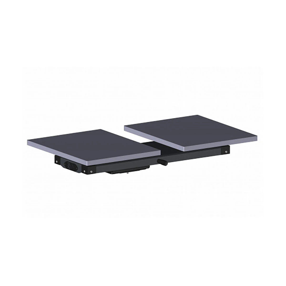 Erweitere deine Einsatzmöglichkeiten und deine Produktivität durch diesen optionalen Schiebetisch. Wie bei Duo Transferpressen üblich, kannst du nun auf einer Platte dein Textil mit deinem Transfer verpresst und auf der zweiten Basisplatte bereits das nächste Textil vorbereiten. Der Aufbau des Schiebetisches ist mit wenigen Handgriffen an deiner Rotex Transferpresse erledigt.