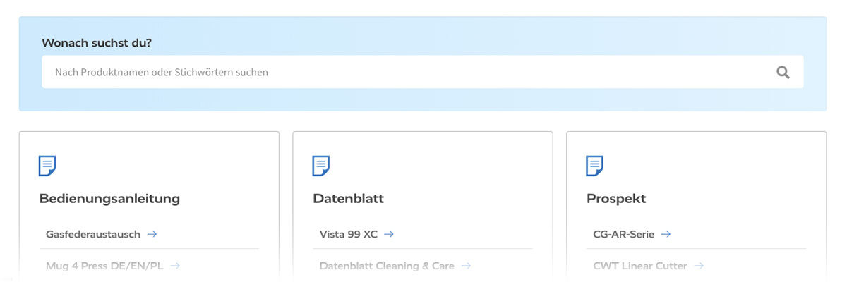 In unserem Downloadbereich haben wir eine Suche integriert, damit alle Dokumente nach Schlagworten durchsucht werden können.