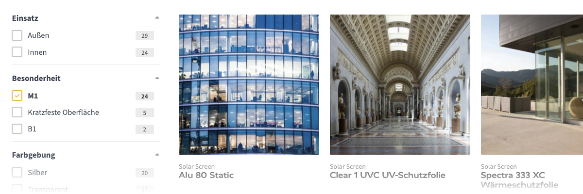 Alle Produktbereiche sind nun gut durch ihre Eigenschaften filterbar.
