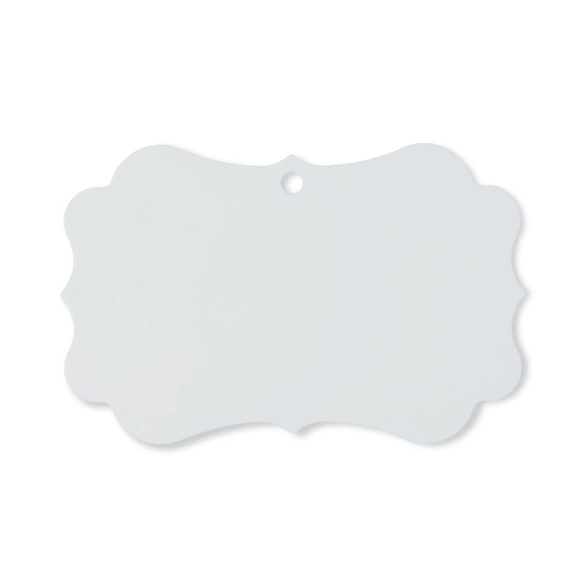 Anhänger aus Aluminium mit weißer, bedruckbarer Fläche auf beiden Seiten und rotem Aufhängebändchen. Die Anhänger sind in fünf verschiedenen Formen verfügbar und bestens für Sublimation geeignet.
