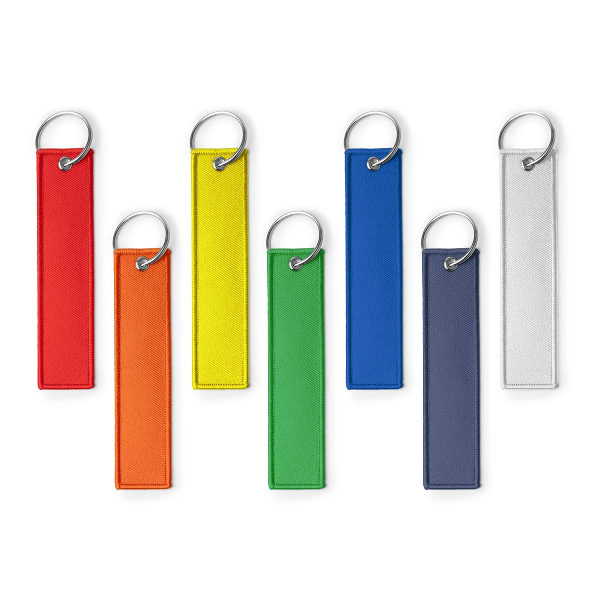 Rechteckiger Schlüsselanhänger aus recyceltem Kunststoff mit weicher Haptik, in 7 Farben verfügbar. Der Anhänger verfügt über eine mit Metall verstärkte Öse und einen Schlüsselring.