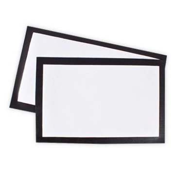Sublimierbare, weiße Barmatte oder Thekenmatte, in 2 Größen lieferbar, mit schwarzer, rutschhemmender Gummirückseite. Die Matten sind bestens für Sublimation geeignet.