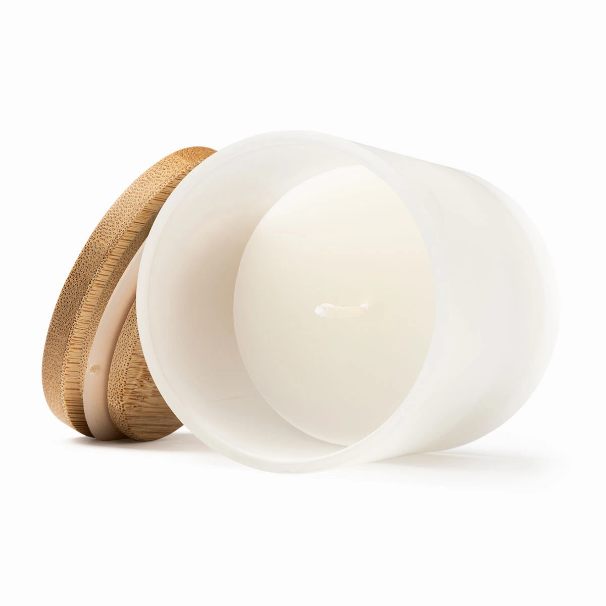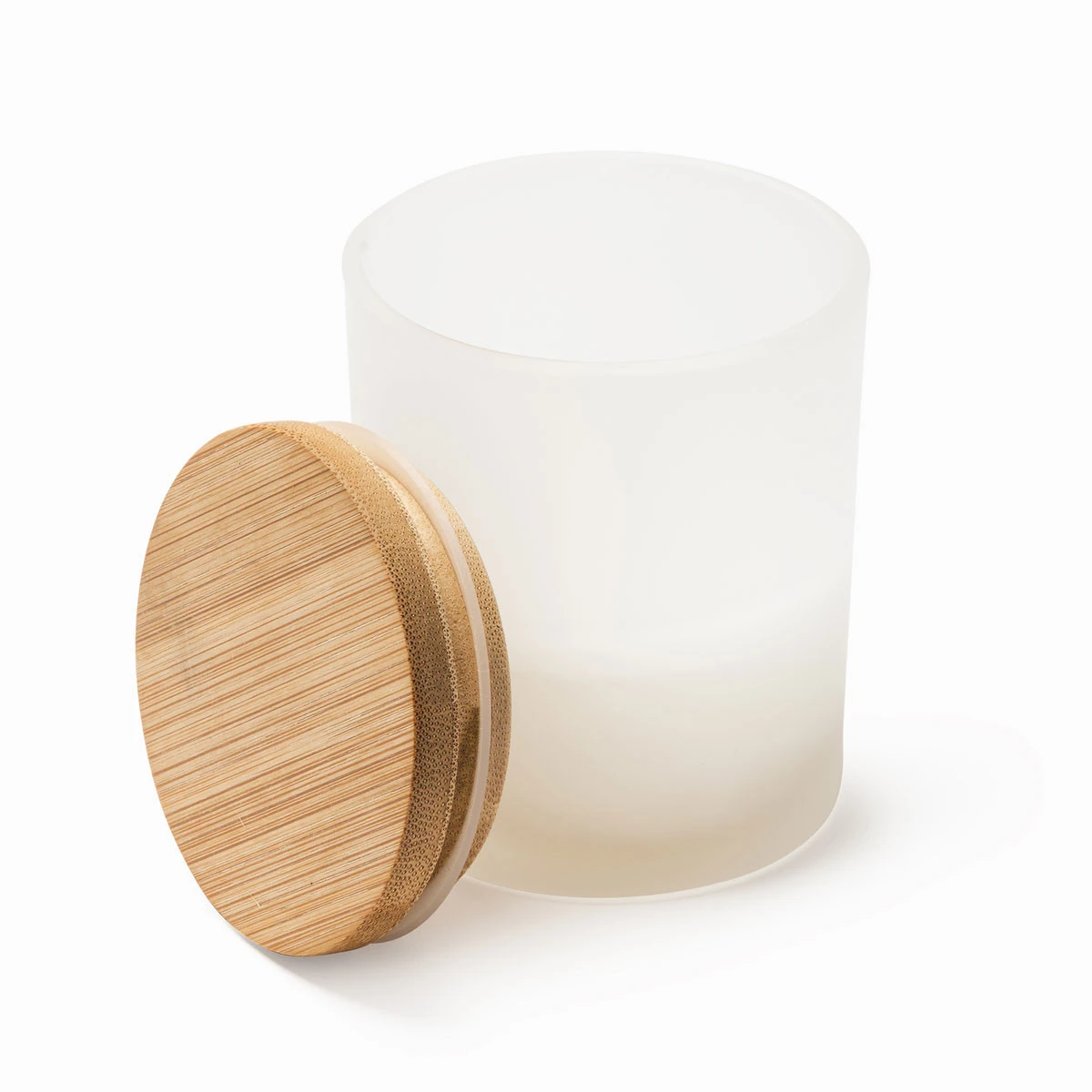 Duftkerze im Glas mit Bambusdeckel und Vanilleduft. Bedruckbar mittels Laser.