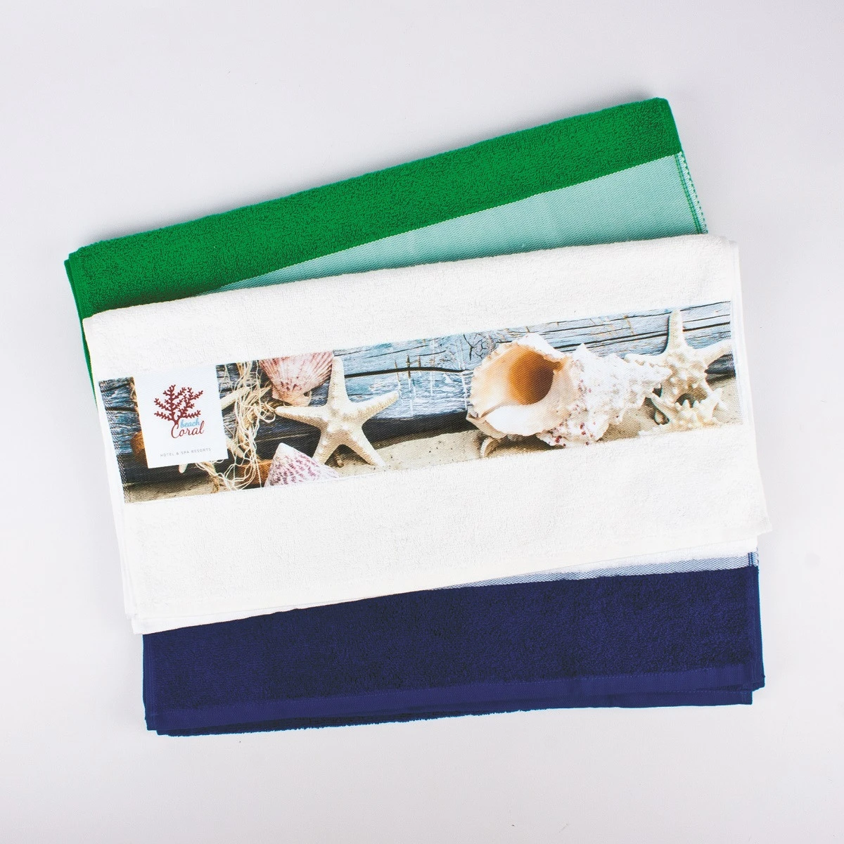 Baumwollhandtuch mit weißer, glatter, dicht gewebter Polyester-Bordüre, die sich bestens für den Transfer- und Sublimationsdruck oder filigrane Stickmotive eignet. In 6 verschiedenen Farben lieferbar. Das Handtuch ist Öko-Tex Standard 100, ISO 9001:2015 zertifiziert.