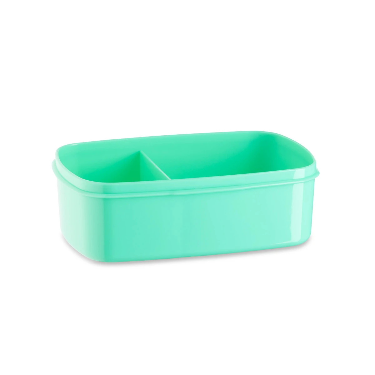 Diese Lunchbox ist aufgrund der Aufteilung ideal, um Brot und Obst oder Gemüse gemeinsam zu transportieren. Erhältlich in weiß, blau, pink oder einem peppigen grün, jeweils mit weißem Deckel. Das bedruckbare Aluminium-Plättchen liegt bei.
