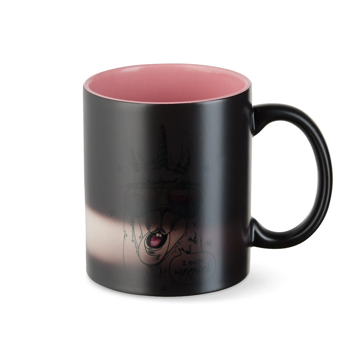 • Schwarze Tasse mit Farbwechseleffekt und mattem Finish, 11 oz