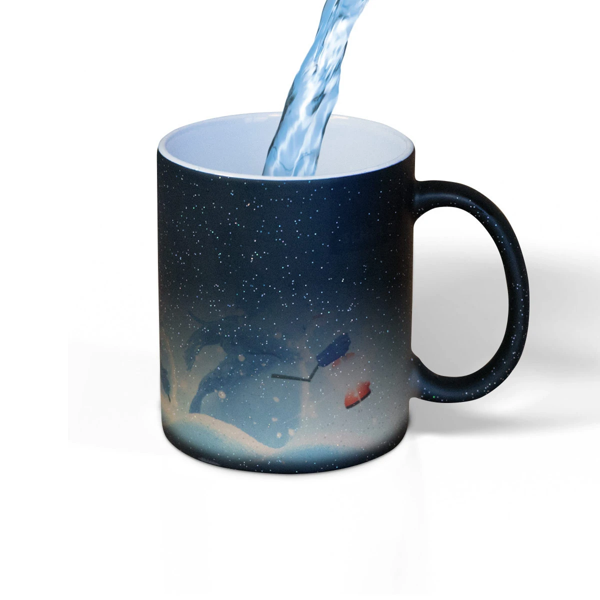 Überraschen Sie sich und Ihre Kunden mit dieser außergewöhnlichen, bunt glitzernden Farbwechseltasse, die bestens für Sublimation geeignet ist. Durch das Befüllen mit heißer Flüssigkeit ab 37 Grad wird die Tasse weiß und das von Ihnen aufgedruckte Motiv sichtbar. Lieferbar ist die Tasse in den Farben rot, blau und schwarz.
