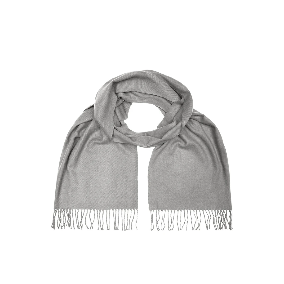 Der Schal besticht durch seinen klassischen Stil und das feine Material, das ihn zum perfekten Accessoire macht. Der Abschluss mit gedrehten Fransen verleiht dem Schal eine elegante Note und rundet das Design harmonisch ab.