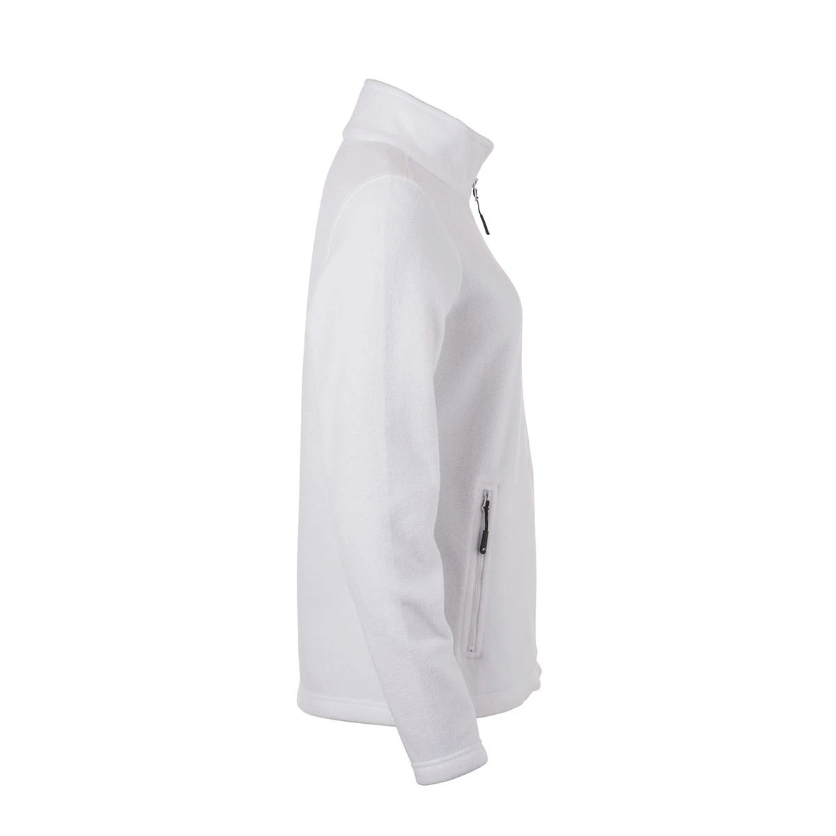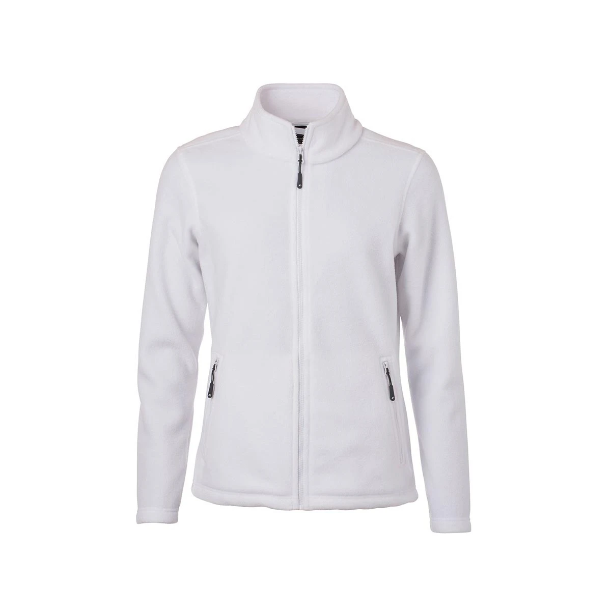 Die Jacke ist leicht tailliert geschnitten und sorgt damit für eine moderne, feminine Passform – ohne dabei die Bewegungsfreiheit einzuschränken. Zwei seitliche Reißverschlusstaschen bieten sicheren Stauraum für kleine Gegenstände wie Schlüssel oder Smartphone. Besonders praktisch: Das Etikett im Nacken lässt sich bei Bedarf problemlos heraustrennen – ideal für Rebranding oder Veredelung.