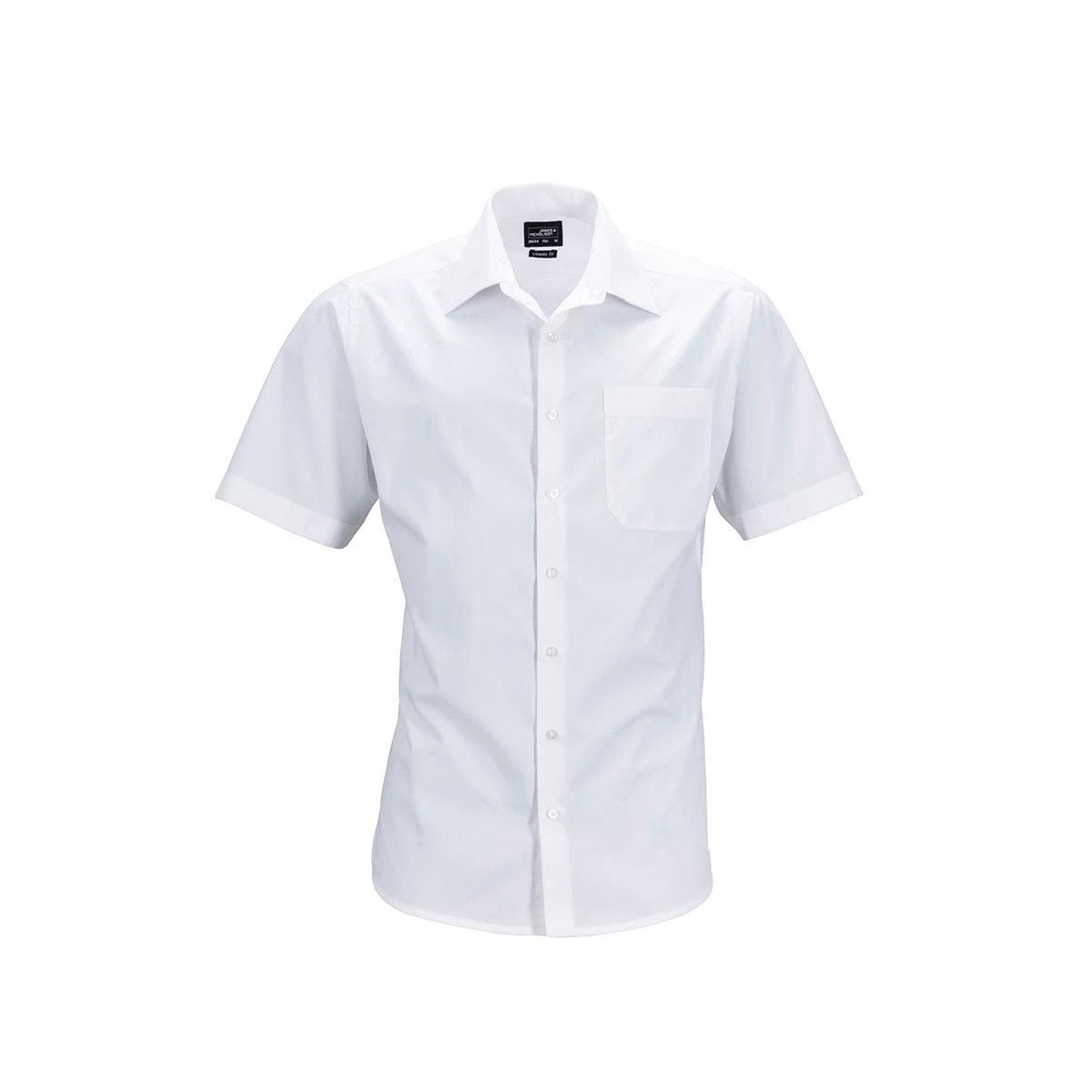 Das JN644 Kurzarmhemd für Herren überzeugt durch sein strapazierfähiges Mischgewebe aus 50 % Baumwolle und 50 % Polyester (105 g/m²) mit pflegeleichter Popeline-Qualität und Easy-Care-Ausrüstung. So bleibt das Hemd auch bei häufiger Nutzung stets formstabil und leicht zu reinigen.