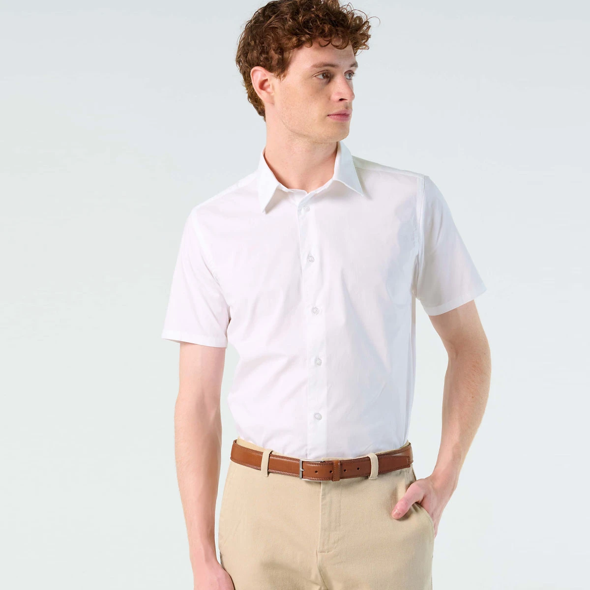 Der klassische Kragen mit einem Knopf verleiht dem Hemd eine zeitlose Ausstrahlung, die sowohl mit als auch ohne Krawatte stilvoll wirkt. Durch den taillierten Schnitt schmiegt sich das Hemd körpernah an, ohne einzuengen, ideal für ein gepflegtes, dynamisches Erscheinungsbild.