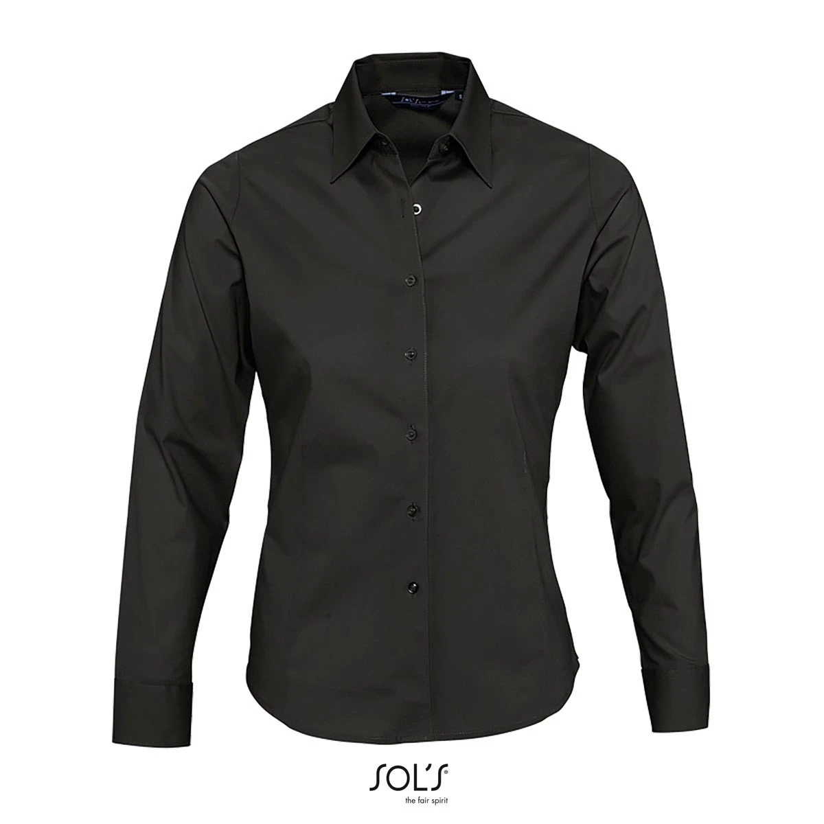 Stylische Langarmbluse aus 97 % Baumwolle und 3 % Elasthan mit hochwertigem Stretch-Material (140 g/m²). Der klassische Kragen mit einem Knopf und die Manschetten mit 2 Ton-in-Ton Knöpfen sorgen für einen eleganten Look. Der taillierte Schnitt betont die Figur und macht die Bluse perfekt für deinen Vereins- oder Firmen-Merchandise.