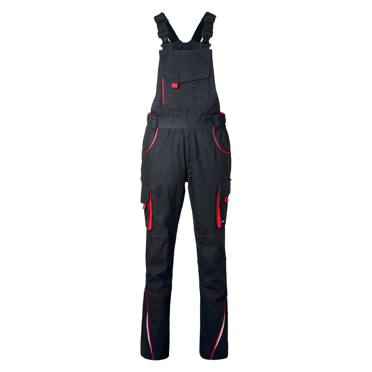 Ein verstellbarer Latz mit elastischen Trägern sorgt für optimalen Sitz. Der elastische Bund mit Gürtelschlaufen unterstützt zusätzlichen Tragekomfort. Die Hose ist mit einer praktischen Latzinnentasche mit Reißverschluss ausgestattet, um Wertgegenstände sicher zu verstauen.
