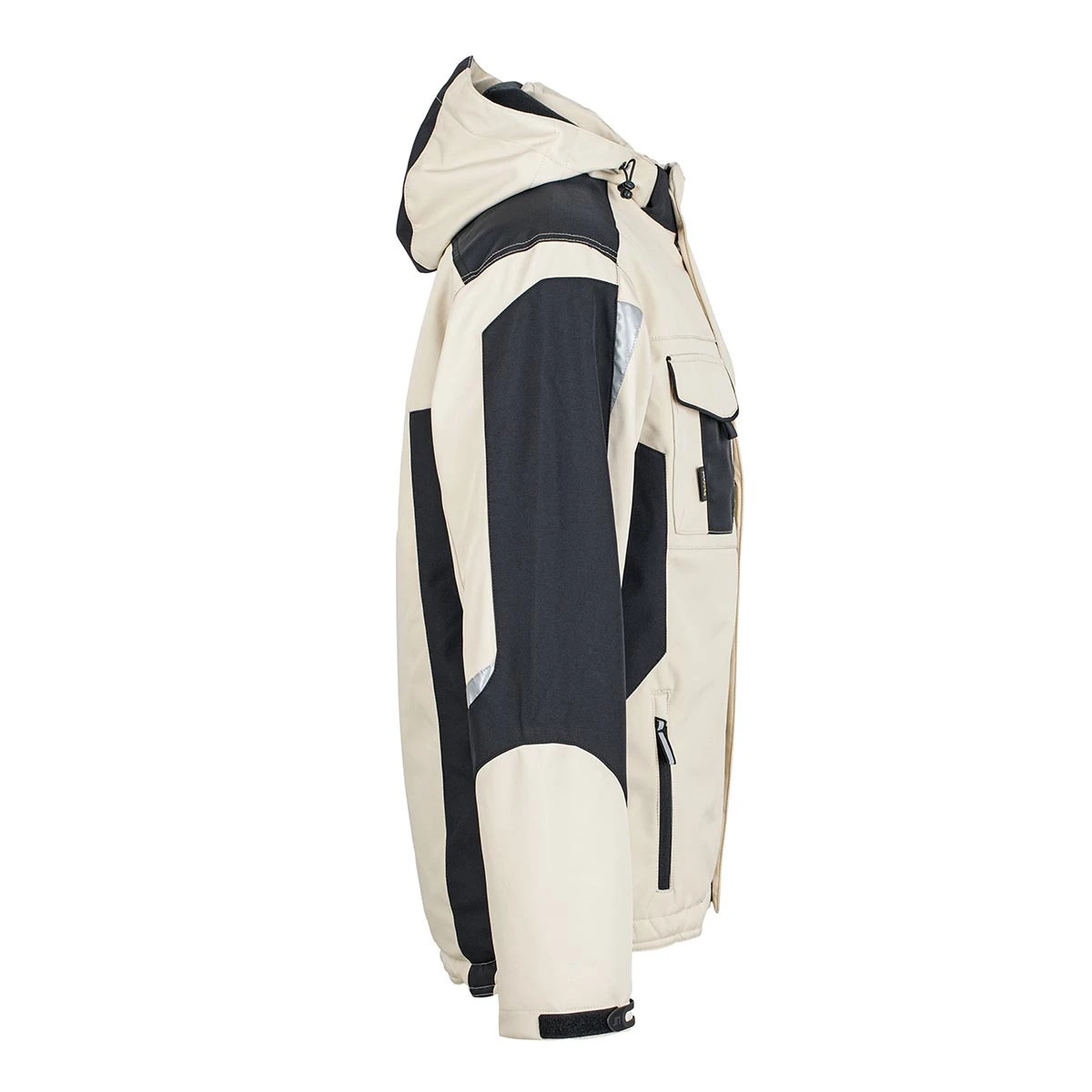 Der Schulterbereich ist mit reißfestem CORDURA® verstärkt – optimal für stark beanspruchte Zonen. Ein Stehkragen mit weichem Fleece, die abnehmbare und verstellbare Kapuze sowie wärmende, innenliegende Armbündchen bieten zusätzlichen Schutz und Komfort.