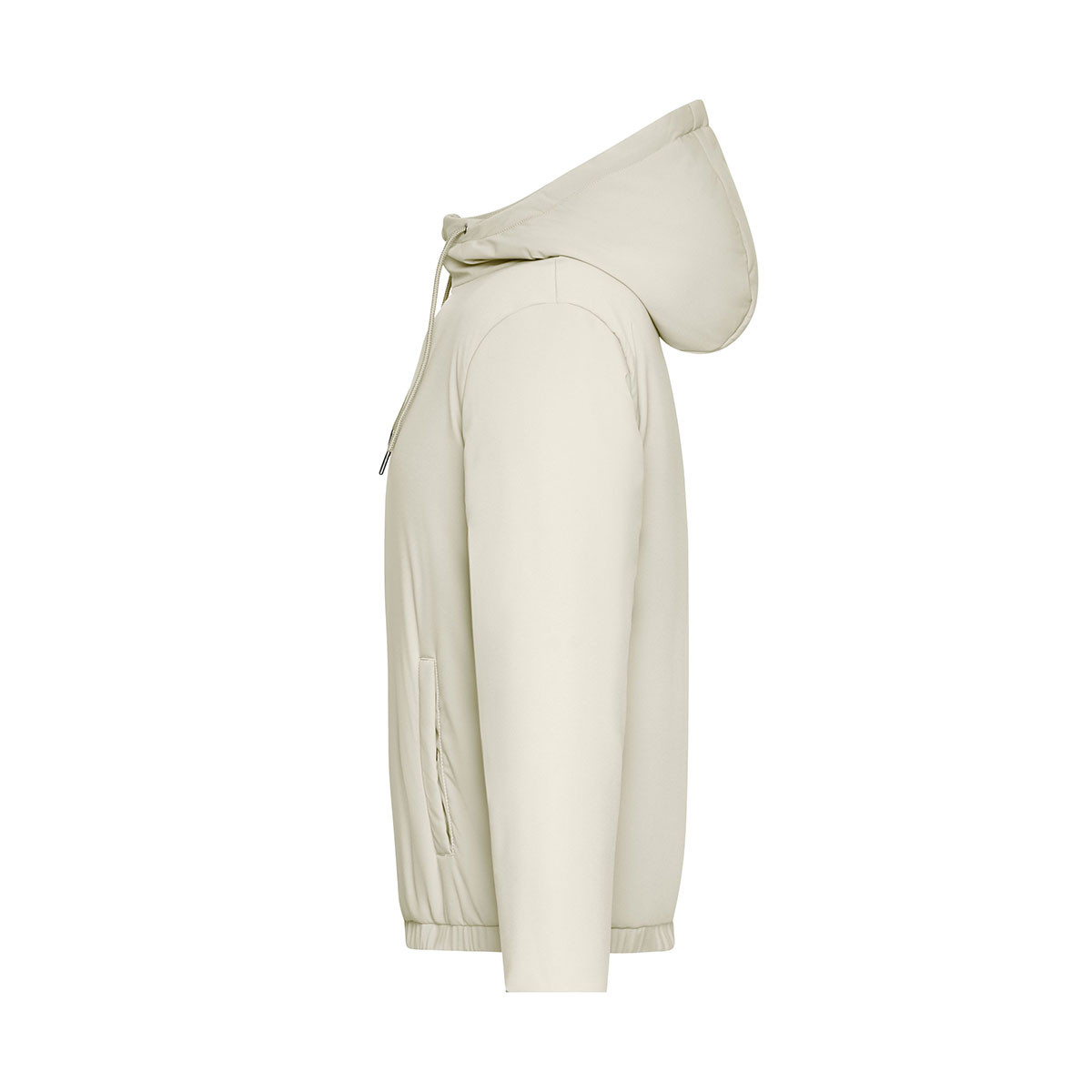 Die angeschnittene Kapuze mit Kordel unterstreicht den sportlichen Charakter und bietet zusätzlichen Wetterschutz. Gummizüge an Bund und Ärmelabschlüssen sorgen für einen guten Sitz und halten Wind zuverlässig ab. Zwei seitliche Eingrifftaschen mit Druckknopf sowie eine Reißverschluss-Innentasche bieten praktischen Stauraum für persönliche Gegenstände.