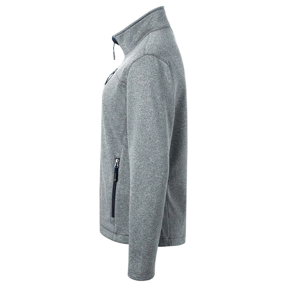 Ein durchgehend hinterlegter Frontreißverschluss mit Kinnschutz schützt zuverlässig vor Wind. Der Stehkragen sorgt zusätzlich für Wärme im Halsbereich.