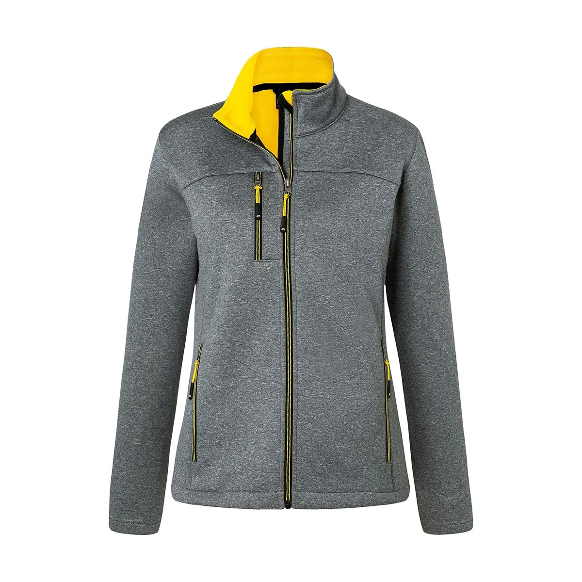 Die Ladies’ Softshell Jacket JN1147 kombiniert sportliches Design mit funktionalem Komfort – ideal für den Arbeitsalltag oder den Outdoor-Einsatz. Gefertigt aus 100 % Polyester (280 g/m²) überzeugt sie mit einer modernen Melange-Optik und einer angenehm wärmenden Fleece-Innenseite in Kontrastfarbe.
