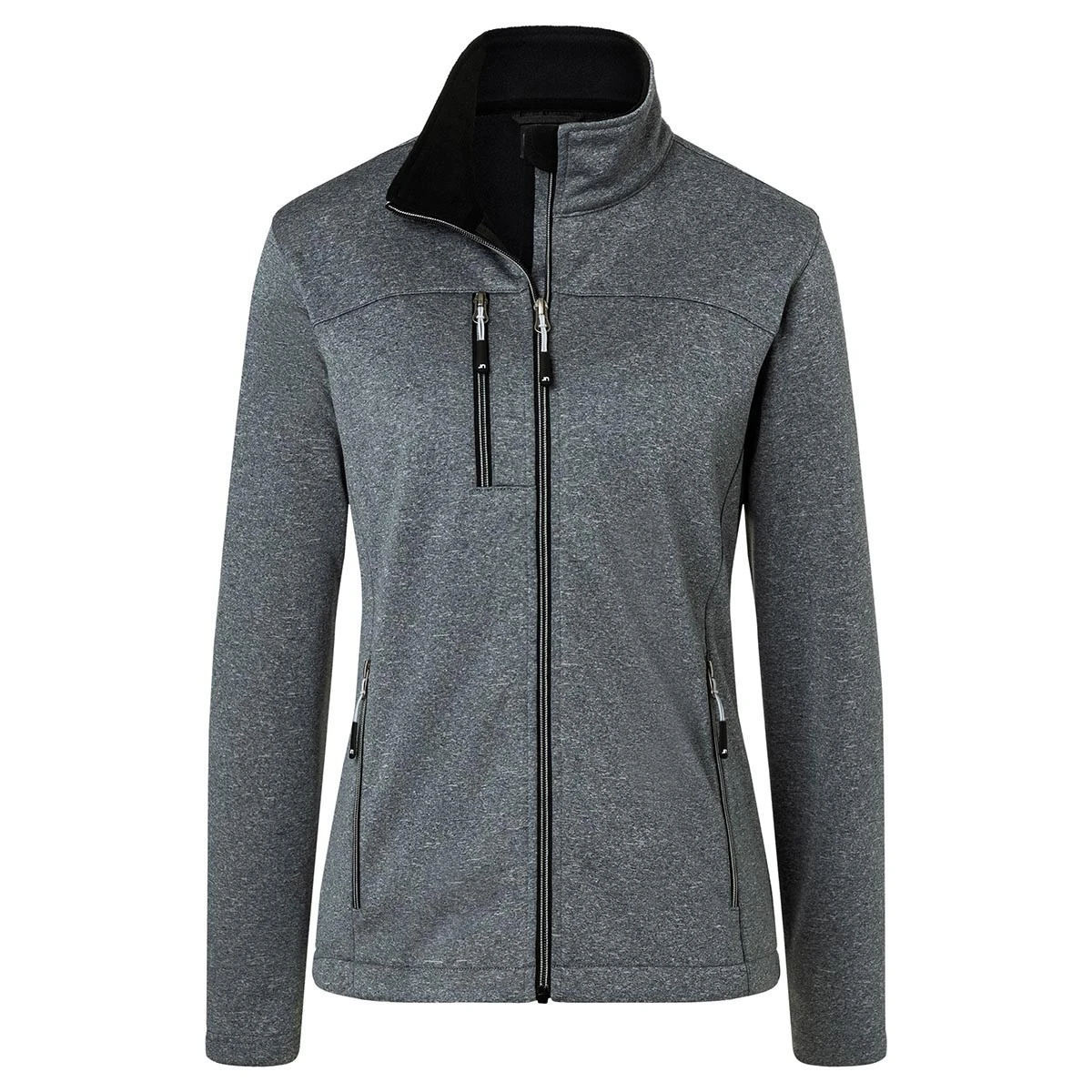Die Ladies’ Softshell Jacket JN1147 kombiniert sportliches Design mit funktionalem Komfort – ideal für den Arbeitsalltag oder den Outdoor-Einsatz. Gefertigt aus 100 % Polyester (280 g/m²) überzeugt sie mit einer modernen Melange-Optik und einer angenehm wärmenden Fleece-Innenseite in Kontrastfarbe.