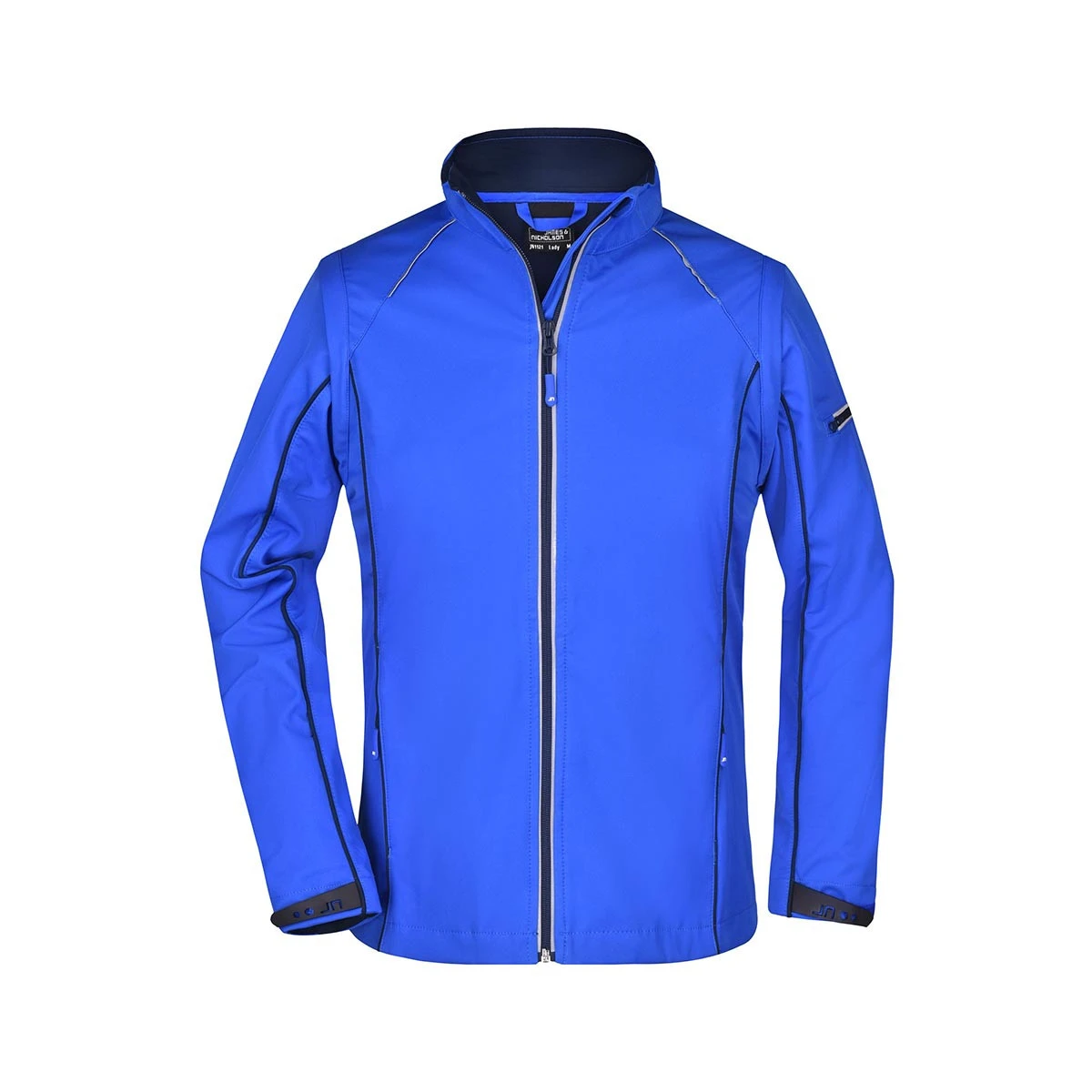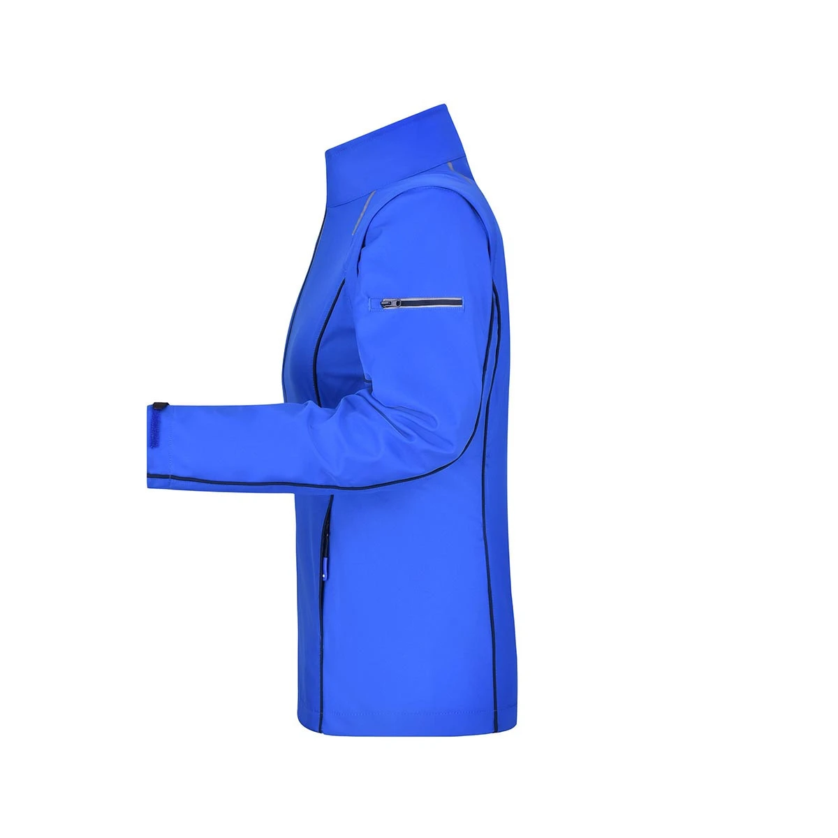 Besondere Akzente setzen die kontrastfarbige Innenseite sowie die farblich abgesetzten Paspeln an Vorder- und Rückenteil sowie den Ärmeln. Der durchgehend hinterlegte, reflektierende Frontreißverschluss mit Kinnschutz sorgt für optimalen Schutz und bessere Sichtbarkeit bei Dämmerung oder Dunkelheit.
