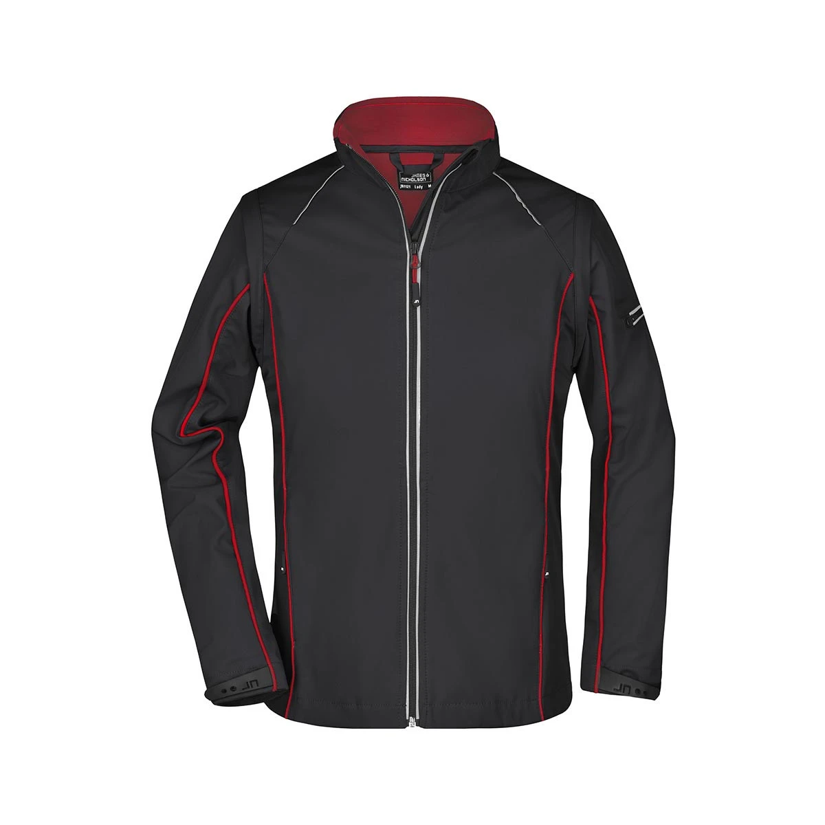 Besondere Akzente setzen die kontrastfarbige Innenseite sowie die farblich abgesetzten Paspeln an Vorder- und Rückenteil sowie den Ärmeln. Der durchgehend hinterlegte, reflektierende Frontreißverschluss mit Kinnschutz sorgt für optimalen Schutz und bessere Sichtbarkeit bei Dämmerung oder Dunkelheit.