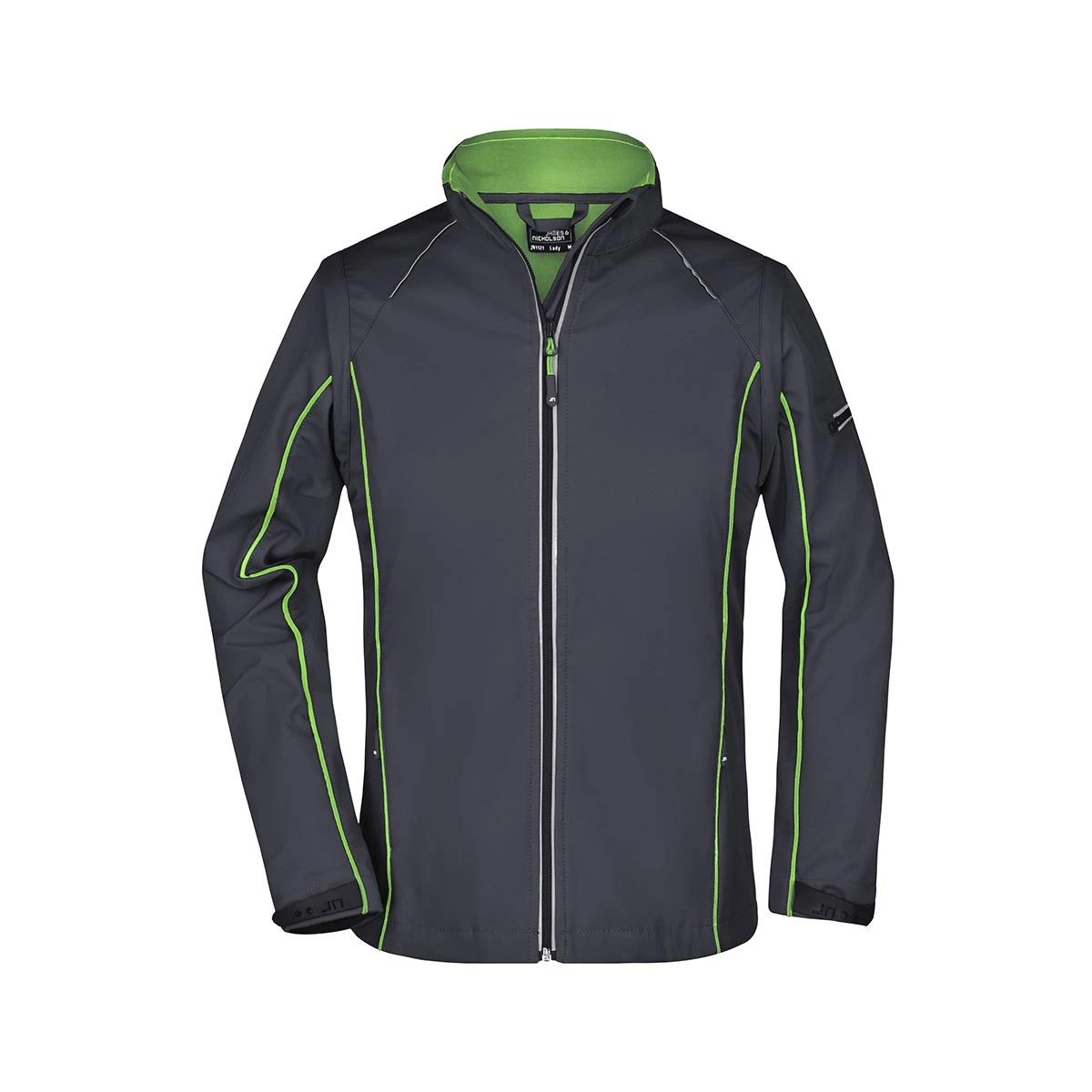Besondere Akzente setzen die kontrastfarbige Innenseite sowie die farblich abgesetzten Paspeln an Vorder- und Rückenteil sowie den Ärmeln. Der durchgehend hinterlegte, reflektierende Frontreißverschluss mit Kinnschutz sorgt für optimalen Schutz und bessere Sichtbarkeit bei Dämmerung oder Dunkelheit.