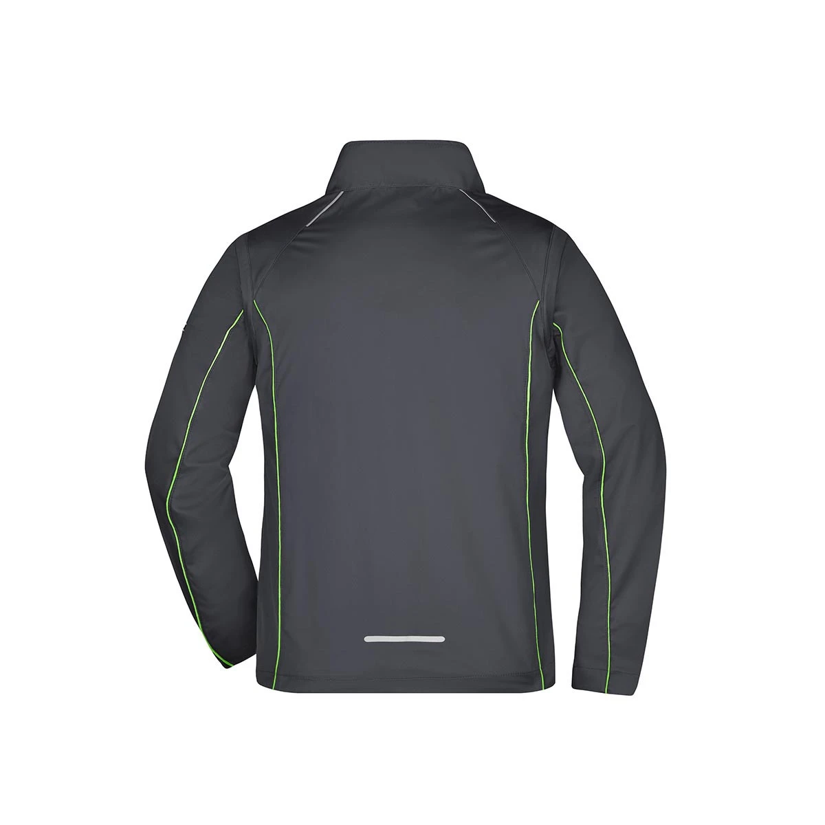 Besonders stylisch sind die kontrastfarbige Innenseite sowie die farblich abgesetzten Paspeln an Vorder-, Rückenteil und Ärmeln. Der Frontreißverschluss ist unterlegt und reflektierend, um Sichtbarkeit bei schlechten Lichtverhältnissen zu erhöhen.