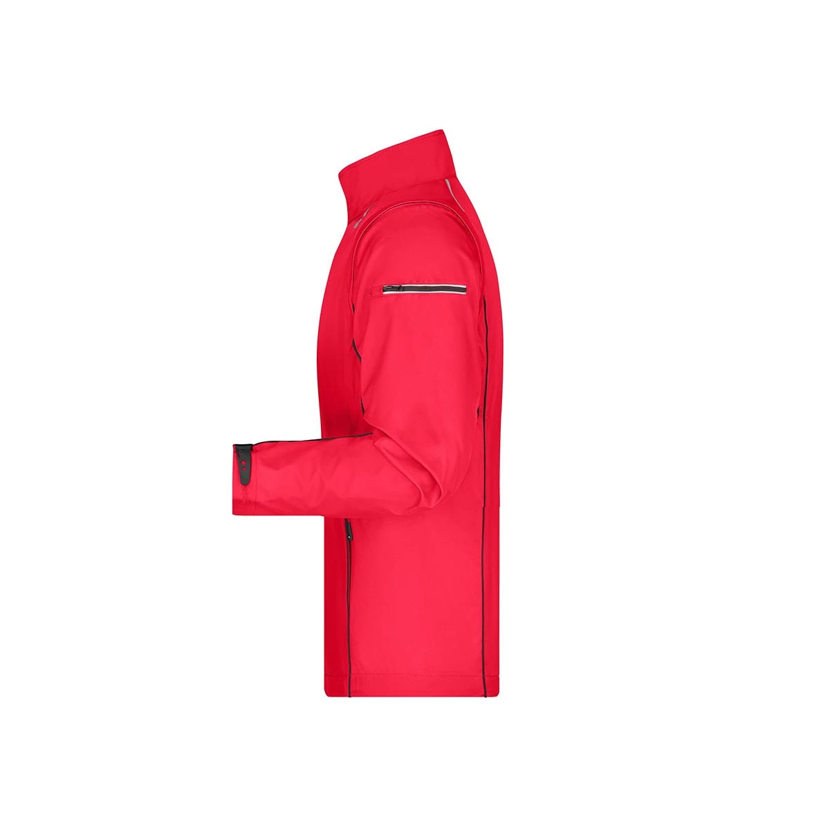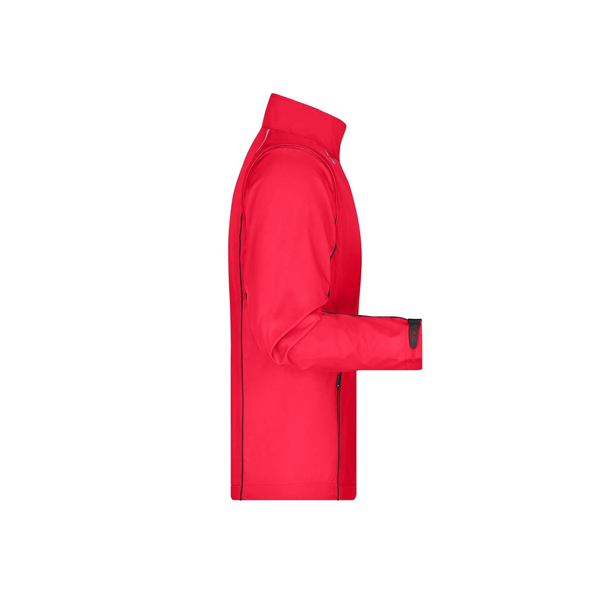 Besonders stylisch sind die kontrastfarbige Innenseite sowie die farblich abgesetzten Paspeln an Vorder-, Rückenteil und Ärmeln. Der Frontreißverschluss ist unterlegt und reflektierend, um Sichtbarkeit bei schlechten Lichtverhältnissen zu erhöhen.