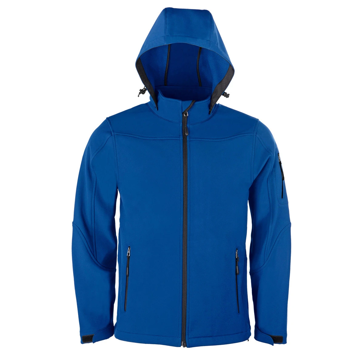 Die HRM Hooded Softshell Jackets bestehen aus einem weichen, atmungsaktiven und witterungsbeständigen Mischgewebe aus 97% Polyester und 3% Elasthan. Die Innenseiten sind mit einem wärmenden Micropolarfleece aus 100% Polyester ausgestattet. Die Jacken sind sehr hochwertig verarbeitet und haben ein modernes, zeitloses Design mit einer modischen Passform. Sie sind winddicht und wasserabweisend, aber dennoch atmungsaktiv. Zusätzlich sind sie mit einer abnehmbaren Kapuze, Kontrastreißverschlüssen und reichlich Taschen ausgestattet. Die Kapuzenbefestigung ist mit einem Reißverschluß und zwei seitlichen Druckknöpfen elegant gelöst. Die Kontrastreißverschlüsse an den zwei Seitentaschen, der Ärmeltasche und den zwei Innentaschen (1 x Veredelungstasche) verleihen unseren Softshell Jackets einen sportlichen Look. Die Ärmelweite läßt sich komfortabel und stufenlos über einen Klettverschluss einstellen. Der abgerundete Saum ist mit einem elastischen Kordelzug versehen. Dadurch läßt sich die Saumweite den persönlichen Bedürfnissen und Witterungsbedingungen ebenfalls stufenlos anpassen. Sie sind labelfrei und besonders gut für den Workwear-, Teamwear-, Freizeit- und Outdooreinsatz geeignet.
