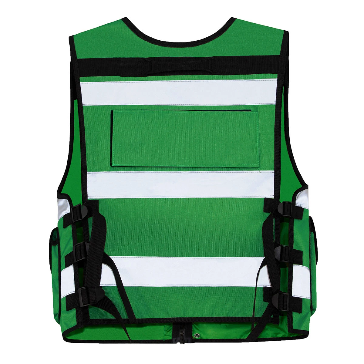 Für maximale Sicherheit sorgen zwei 5 cm breite Reflexstreifen, die den Körper umlaufen, sowie zusätzliche Reflektoren an den Taschen und über den Schultern – ideal für Einsätze bei schlechten Lichtverhältnissen oder in der Dunkelheit.