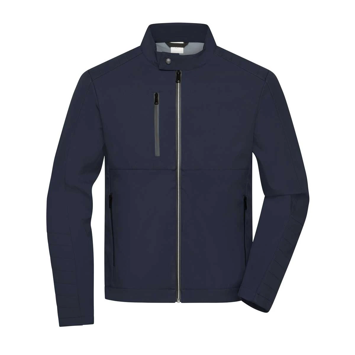 Optisch punktet die Jacke mit leicht gesteppten Einsätzen an Schultern und Ärmeln, einem durchgehend hinterlegten Frontreißverschluss sowie einem hochschließenden Stehkragen mit Druckknopf. Zwei seitliche Reißverschlusstaschen, eine Brusttasche und zwei Innentaschen bieten praktischen Stauraum.