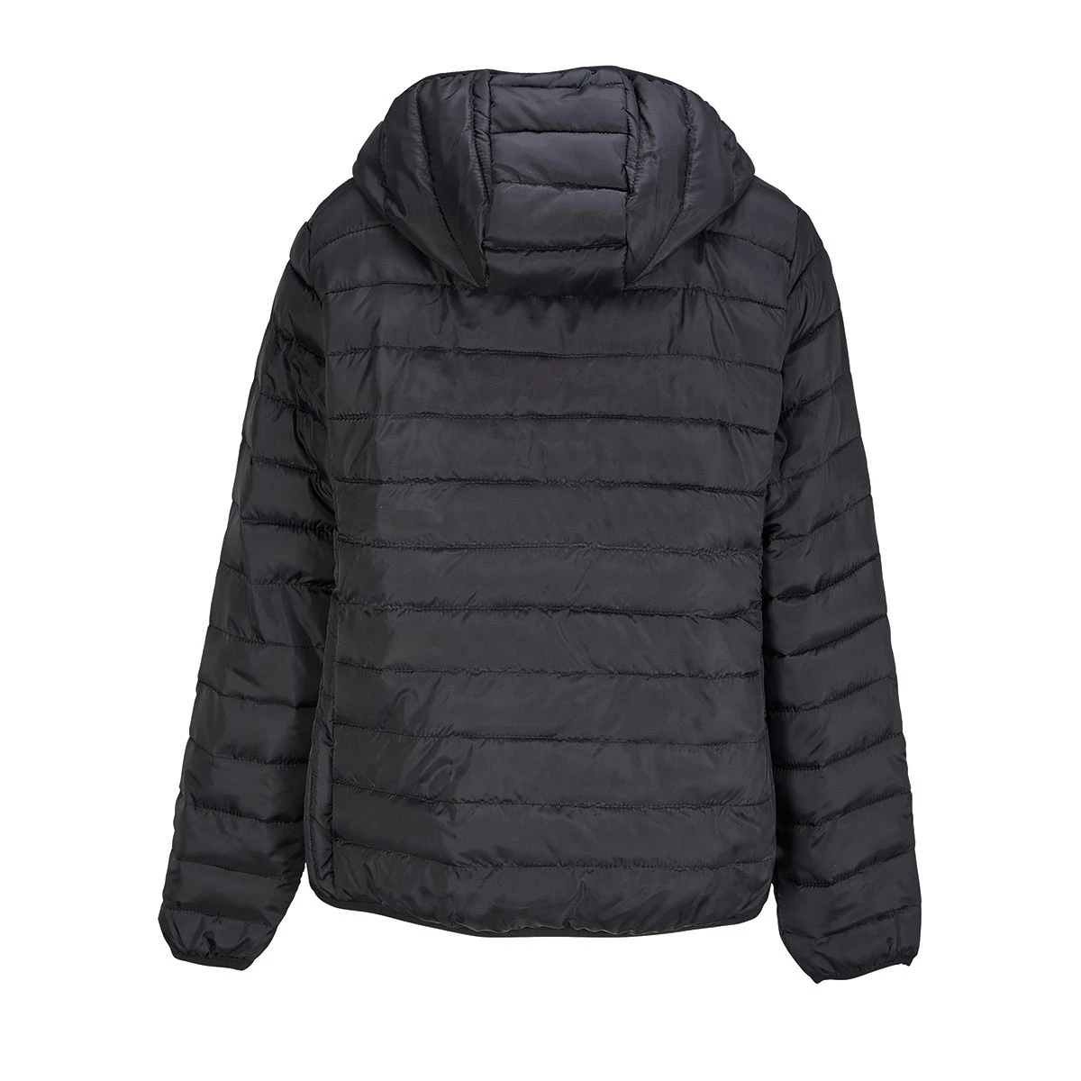 Hergestellt aus 100 % recyceltem Polyester (Taft 280T) und gefüllt mit einer leichten Wattierung aus Polyester-Daunen, bietet die Jacke angenehme Wärme bei geringem Gewicht. Die wasserabweisende Oberfläche sorgt für Schutz bei wechselhaften Wetterbedingungen, während die elastischen Einfassungen an Kapuze, Bund und Ärmelabschluss für einen komfortablen Sitz sorgen.
