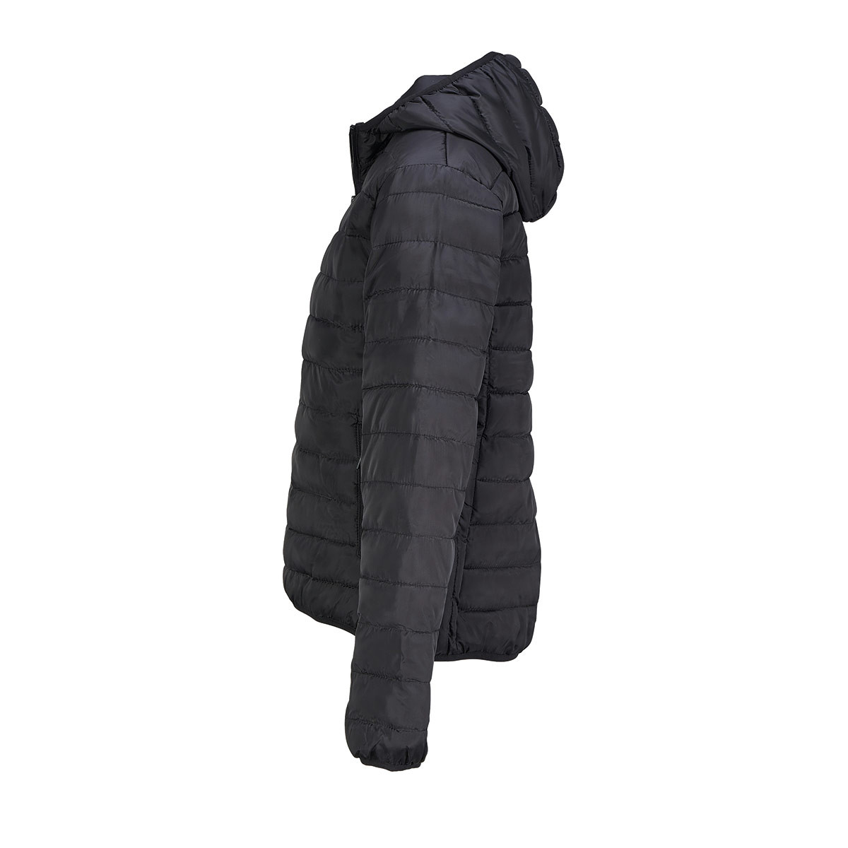 Hergestellt aus 100 % recyceltem Polyester (Taft 280T) und gefüllt mit einer leichten Wattierung aus Polyester-Daunen, bietet die Jacke angenehme Wärme bei geringem Gewicht. Die wasserabweisende Oberfläche sorgt für Schutz bei wechselhaften Wetterbedingungen, während die elastischen Einfassungen an Kapuze, Bund und Ärmelabschluss für einen komfortablen Sitz sorgen.