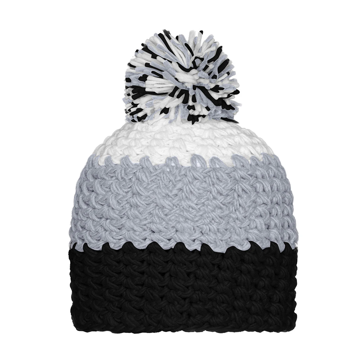 Die Crocheted Cap with Pompon MB7940 eignet sich ideal für auffällige Veredelungen oder als markantes Winteraccessoire im Team-, Event- oder Werbebereich.