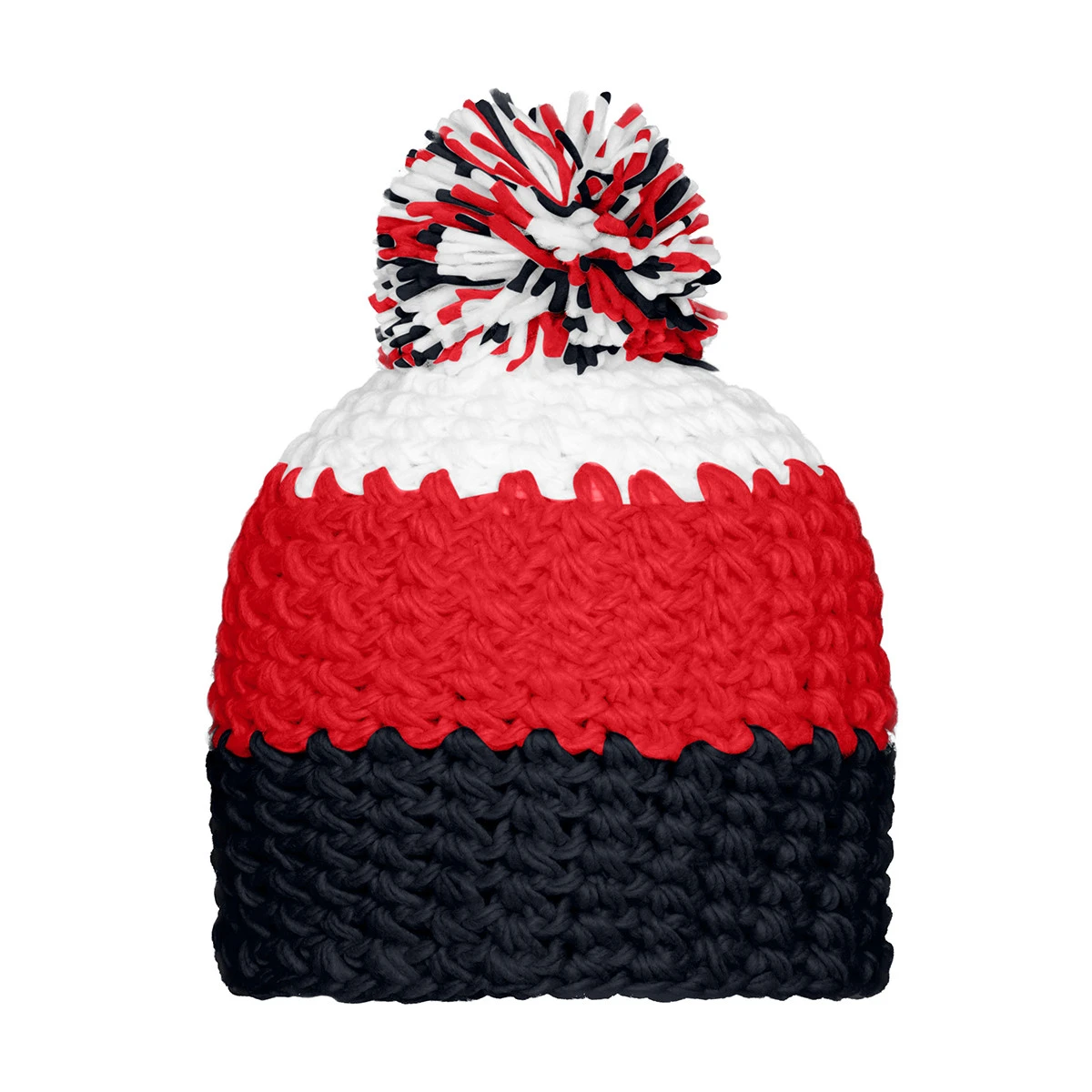 Die Crocheted Cap with Pompon MB7940 eignet sich ideal für auffällige Veredelungen oder als markantes Winteraccessoire im Team-, Event- oder Werbebereich.