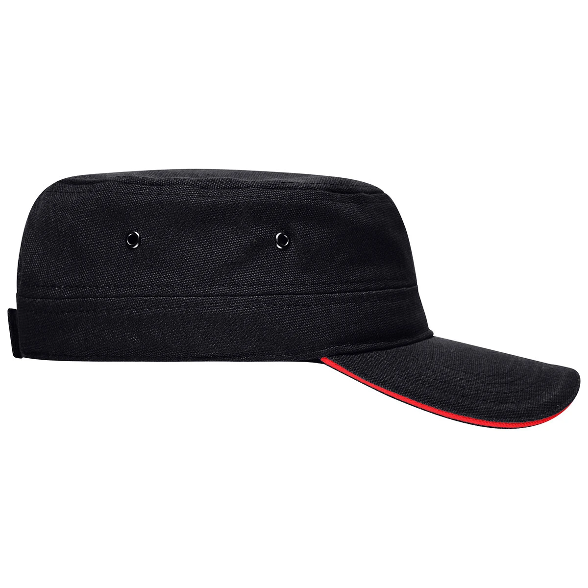 Die Military Sandwich Cap MB6555 besteht aus hochwertigem 100 % Baumwoll-Canvas mit 250 g/m² und überzeugt durch ihre strapazierfähige Verarbeitung. Vier seitlich angeordnete Metallösen sorgen für optimale Belüftung, während das gefütterte Baumwollschweißband angenehmen Tragekomfort bietet. Die Größenanpassung gelingt unkompliziert über den praktischen Klettverschluss.
