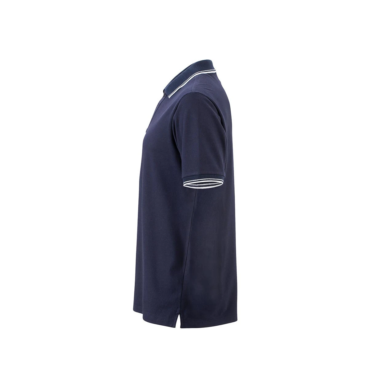 Das Polo überzeugt mit einem flachen Strickkragen und Ärmelbündchen, die durch markante Streifen in Kontrastfarbe einen sportlichen Akzent setzen. Die klassische 3-Knopf-Leiste in Ton-in-Ton rundet das schlichte, dennoch elegante Design ab. Verstärkte Seitenschlitze mit kontrastierendem Band sorgen für zusätzliche Langlebigkeit und Komfort.