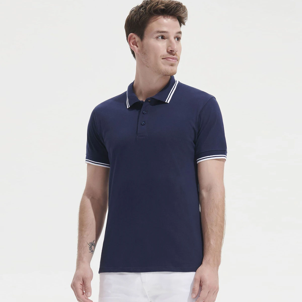 Herren Piqué Polo mit Kontraststreifen.