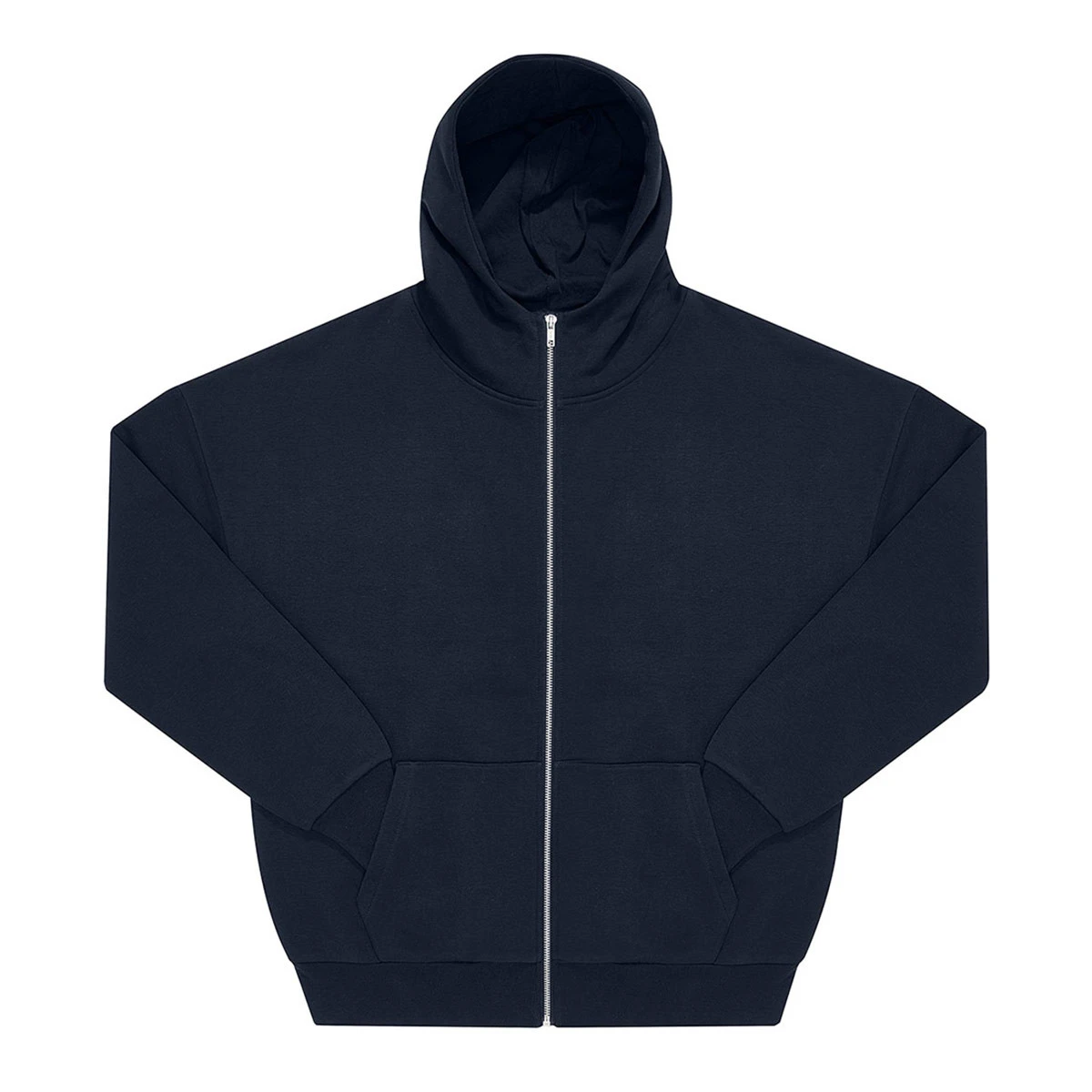 Ein durchgehender Metallreißverschluss, die gefütterte Kapuze ohne Kordel, sowie breite Rippbündchen an Saum und Ärmeln verleihen der Jacke einen modernen, minimalistischen Look. Das neutrale Größenetikett im Nacken ermöglicht Dir maximale Freiheit für Deine eigene Gestaltung – ob als Teil einer Schulkollektion, für Clubs oder als Basis einer Streetwear-Reihe.