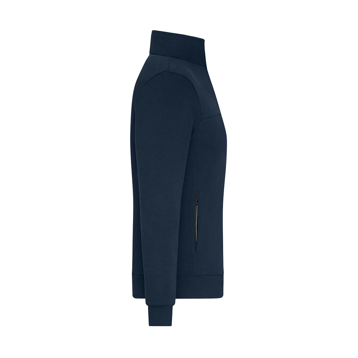 Der Stehkragen verleiht der Jacke eine cleane, moderne Optik und schützt zugleich vor kühler Luft. Zwei verdeckte Seitentaschen mit Reißverschluss bieten sicheren Stauraum für persönliche Gegenstände oder Arbeitsutensilien, während zwei Innentaschen zusätzlichen Platz schaffen. Die reduzierte, hochwertige Optik macht die Sweatjacke zur idealen Basis für Stick- und Druckveredelungen.